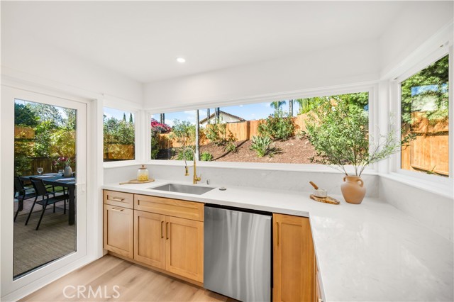 It is an artist's masterpiece for your great taste and appreciation, unlike anything else in beautiful Mission Viejo!!! it is most conveniently located within 3/4-mile walking distance to Mission Viejo High School, middle and elementary schools. Very easy freeway access and shopping facilities. Completely redesigned and renovated from bottom to top that keeps it absolutely unique and much better than most model homes: all around new grading and concrete, new siding and new roof, new windows and doors, new HVAC and electricity system, new high end vinyl flooring throughout, new quartz countertops above natural wood tone cabinets, new garage door and epoxy floor, new closets, new fireplace, new bathrooms with smart toilets, re-piped, carefully crafted landscaping...etc.. Almost 100 recessed lights even cover garage inside and outside. No detail has been ignored for perfection. Great floor plan with high ceiling in living room, one bedroom upstairs has been converted to an open space office. Master bedroom has two closets facing backyard. The front screen wall gives great privacy for living and dining, combined with super large viewfinders, brings stylish Japanese garden experience. Super spacious kitchen is very enjoyable in cooking and watching large backyard where a professional designer spent months to carefully craft a gorgeous landscaping picture with oleanders, palms, bougainvilleas, bananas and figs standing for beautiful outdoor living.