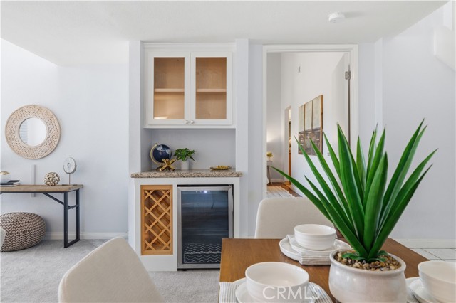 Don't miss this Mission Viejo condominium with stunning mountain views, located in the gated lakefront community of Finisterra on the Lake. This spacious two bedroom, two bath unit features a large loft, high ceilings and views galore. As you enter this open, light and bright unit, you're greeted with soaring ceilings and views straight out to Saddleback Mountain. Just off the entry is the kitchen with granite countertops, recessed lighting, breakfast nook, loads of pantry space and stainless steel appliances. The seamless flow of the living area is highlighted by a centrally focused fireplace and new dual pane floor-to-ceiling windows. A new sliding glass door leads to the private balcony where the views continue onto Lake Mission Viejo. The cozy dining area is enhanced by a built-in buffet with granite countertop, wine rack and refrigerator that's perfect for entertaining guests. The large primary suite features an ensuite bathroom with large walk-in shower, walk-in closet and new dual pane sliding glass door and window with spectacular views. The secondary bedroom is conveniently located away from the primary suite, and offers its own full bath that's completely remodeled with quartz countertops, shaker-style cabinets and more. Upstairs you'll find the large loft space with Murphy bed, and a bonus nook that is perfect for a home office or play area. This condominium offers features such as automatic and horizontal blinds throughout, lots of closet space, recessed lighting, ceiling fans, a newer AC unit, detached garage with newer roof, separate private carport, inside laundry area with all appliances included and more. Living at Finisterra on the Lake means you have access to resort-style amenities including a sparkling community pool, private beach, lakeside boardwalk, boat docks, and all the recreation opportunities Lake Mission Viejo has to offer; from paddle boarding and kayaking, fishing, boat rentals, summer concerts, 4th of July fireworks and more. Enjoy the privacy and security of this gated community, with access to top-rated schools, nearby shopping and dining and easy access to major freeways and toll roads. With its unbeatable lifestyle, this is a rare opportunity to own a slice of lakeside living in Mission Viejo.