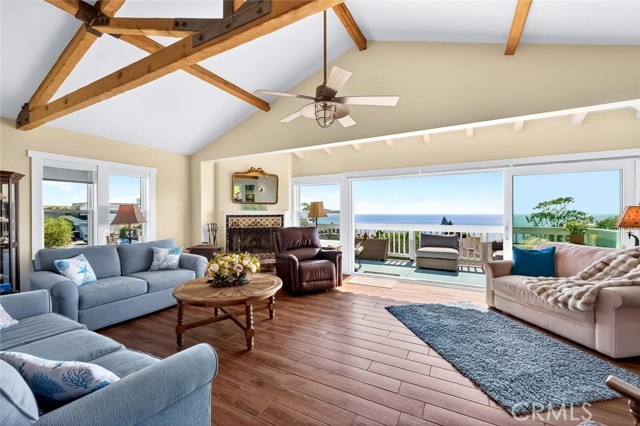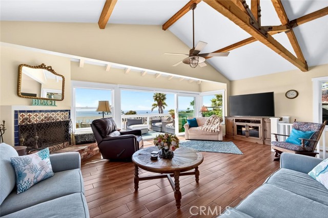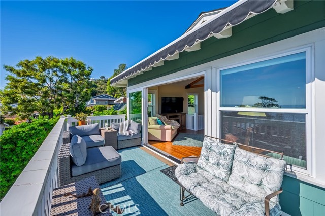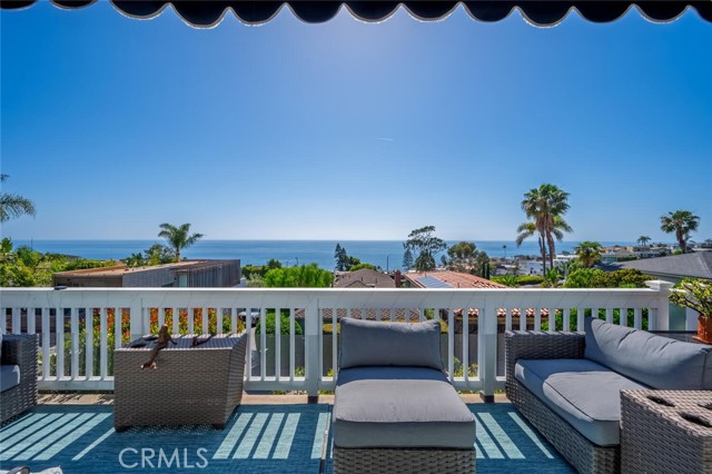 Modern coastal charm: A reimagined craftsman retreat Discover the perfect harmony of historic character and contemporary luxury in this stunning four- bedroom, three- bath Craftsman cottage. Meticulously remodeled and expanded, this home preserves its original soul while offering the open-concept lifestyle of a modern residence. The expansive great room serves as the centerpiece of the house, where the living area flows effortlessly into the gourmet kitchen. Vaulted ceilings soar overhead, anchored by magnificent hand- hewn trusses that add a touch of rustic architectural artistry. This luminous space is designed for both grand entertaining and quiet, sun-drenched afternoons. Through expanded floor to ceiling glass doors, the stunning, ocean view deck extends the living space with a comfortable indoor/ outdoor flow. Enjoy sweeping views of the Pacific Ocean and Catalina Island, culminating each evening in vibrant, unobstructed sunsets that paint the sky from the comfort of your living room. The primary suite serves as a private escape where luxury meets the tranquility of the coast. French doors open onto a private ocean-view deck, allowing the sound of the waves and the cool Pacific breeze to become a permanent fixture of your morning routine. Beyond the interior lies a private, fully enclosed backyard designed for the ultimate "al fresco" lifestyle. This secluded sanctuary offers a blend of lush landscaping and functional luxury, creating an ideal environment for both intimate family dinners and large-scale year round soirees. The outdoor space features a premium grill, ample stone countertop prep space and barstools for gathering. Enjoy the outdoor fire-pit to enhance the cozy, yet open aesthetic. Located a few blocks to locals' favorite and Laguna's most sought after beach, Victoria Beach. Take the Laguna Beach trolley into town and back to your stylish retreat.
