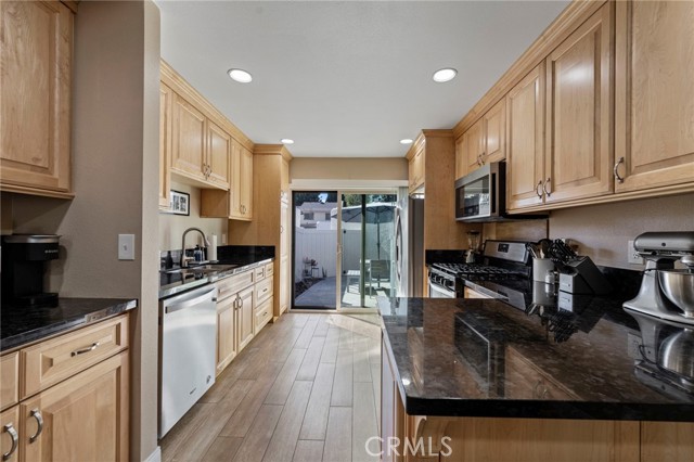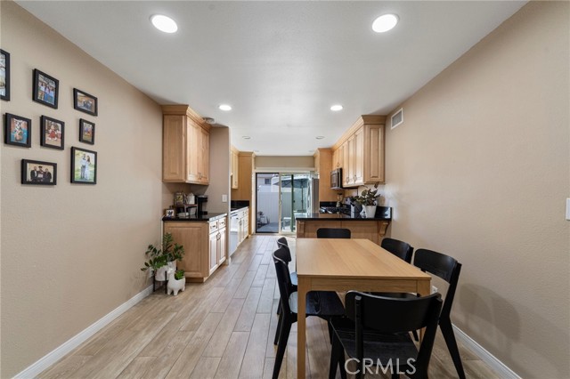 This spacious and meticulously updated 2-bedroom home offers tons of modern comfort and style, along with 1.5 beautifully updated bathrooms with contemporary fixtures and finishes. The home was recently remodeled to include a half bathroom off the master bedroom, creating a convenient master suite, in addition to the full bathroom. Both bathrooms are meticulously updated with Arizona tile flooring and shower and Kohler and Delta appliances. The stunning kitchen boasts plenty of features that were all installed in 2021, such as: updated solid wood cabinetry with elegant hardware, sleek granite countertops, and high-end appliances such as the stove, microwave and dishwasher. This is all complemented by recessed lighting and a large high quality glass slider door to the private patio backyard, allowing in a flood of natural afternoon light. The open-concept layout of this beautiful home features high-end wood laminate flooring throughout, installed in 2021. Both bedrooms are spacious, with floor-to-ceiling mirror slider doors for the ample closet space, and real pine baseboards. The home has a high-end electronic climate control system connected to the newer furnace and air conditioning unit, plus, there is an attic fan system for quick, efficient cooling when you get home on those hot summer days. Outside the glass slider door, the spacious and private patio backyard provides a serene retreat for relaxation or gatherings. This yard connects to the spacious 2-car garage which includes convenient laundry facilities, adding to the home’s functionality. Here you will find the water heater with reserve tank, newly installed in 2022, and fixtures ready for a water softener. This move-in-ready gem combines modern upgrades with practical living spaces, creating a wonderful place for your family to call home.