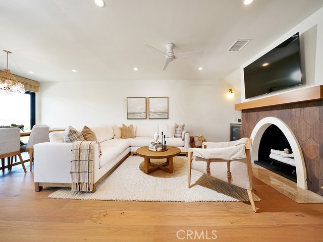 Fully-furnished winter lease available beginning October 18 to May 2026. Professionally designed by Julia Alt Design, this newly reconstructed three bedroom, two and half bath, attached single family residence has a front row bluff location in The Bluffs offering peaceful and panoramic views of Upper Newport Bay. This warm, comforting, beach style property is fully furnished with features that include oak wood flooring throughout, custom oak cabinetry in off white and white oak shades, quartzite counters, and custom paint, wallpaper and window coverings. The chef's kitchen is open to the living and dining area, and offers Thermador stainless steel appliances including a 48" dual fuel range, ice maker, quartz counters, recessed and island pendant lighting, oak floating shelves, wall sconces, gold tone drawer and cabinet pulls, and a fire clay sink. The living area is warmed by a tile and plaster wood burning fireplace, has a white sectional sofa, ceiling fan and a dry bar with a beverage refrigerator and flows to the newly resurfaced rear patio with a pastoral view setting. The lower level also provides a powder bath and stylish laundry room with hexagon floor tile, sink and equipped with an LG wash tower. Upstairs, the primary suite has a King bed, two nightstands, dresser, area rug, and bench seating and offers serene views of the back bay and opens to a balcony shared by bedroom 2. The second and third bedrooms have Queen beds, two nightstands, wall sconces, dressers area rugs. Televisions with streaming in each room, internet connected, alarm system, exterior security cameras also present. The Bluffs offers more than 125 acres of open space with unparalleled views, extensive greenbelts, meandering paths, thousands of trees, a reflection pond and easy access to the Upper Newport Bay Ecological Reserve which provides opportunities for hiking, biking, or kayaking. Neighborhood schools are Eastbluff Elementary and Corona del Mar High School, which is honored as a California Distinguished School. Essential goods are available nearby at Eastbluff Village Shopping Center and the Newport Beach Tennis Club. Fashion Island, Balboa Island, Laguna Beach and other popular OC destinations are just minutes away.