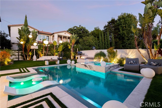 Beautifully constructed in 2018 by Melia Homes, this modern coastal residence sits within an exclusive enclave of just twelve homes. Every detail of this two-story, 3,600-square-foot home has been thoughtfully enhanced by its current owner, blending refined design with resort-style living. Inside, the first floor is entirely clad in wide-plank white oak flooring and framed by 10-foot ceilings. A downstairs bedroom with separate entrance offers flexibility for guests or a home office. The open-concept layout flows seamlessly from the kitchen to the dining and living areas, where wall-to-wall sliding glass doors open on two sides—creating an effortless indoor-outdoor connection to the entertainer’s backyard; Newly reimagined & completed by Pool Logic in 2022 it is a true private resort. The Pebble Tec pool, shimmering with an abalone and mother-of-pearl blend, features built-in seating, a shallow sun shelf for in-water lounging, and a waterfall-edge spa constructed from solid marble slabs with a spillover design. Entertain beneath the stars with a Fontana pizza oven, flat-top grill, outdoor refrigerator, and outdoor shower—all framed by a modern fireplace and 3D illuminated wall art that transforms the space after dark. The chef’s kitchen is outfitted with an all-stainless KitchenAid appliance suite, including a built-in refrigerator and freezer, six-burner stove, and double oven, along with a built-in Bosch espresso maker and a striking 120-bottle glass wine wall adjacent to the dining area. Upstairs, a spacious bonus living room provides additional space for relaxation & entertainment while wired speakers throughout, Arteriors designer lighting, a Nest smart home system, and remote-controlled shades complete the elevated interior experience. Set within one of Eastside Costa Mesa’s most desirable areas, 311 Costa Bella Court delivers the perfect balance of modern design, privacy, and resort-quality amenities—every element thoughtfully curated to create a one-of-a-kind home experience.