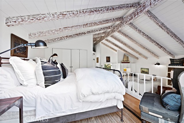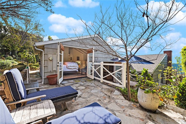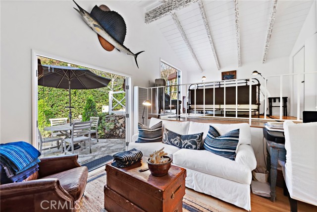 Located on a private street in South Laguna just a short stroll from the sand, this fully furnished and beautifully updated unit offers the perfect coastal retreat. The interior features open-beamed ceilings, laminate flooring, and a stylish kitchen with a gas stove that flows seamlessly into the living room. A full bathroom with bathtub adds convenience, while the loft bedroom overlooks the living space and includes a plush king-sized bed and generous closet storage. Outside, a private patio invites alfresco dining with serene ocean views, complemented by apple and lemon trees. Additional highlights include shared laundry facilities and one dedicated parking space directly in front of the home.