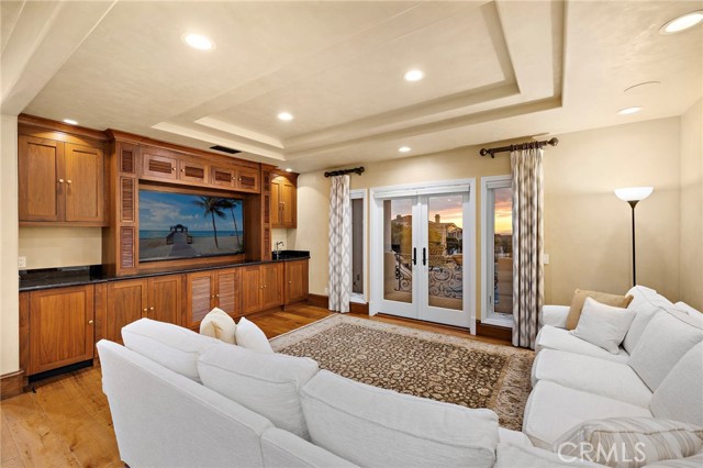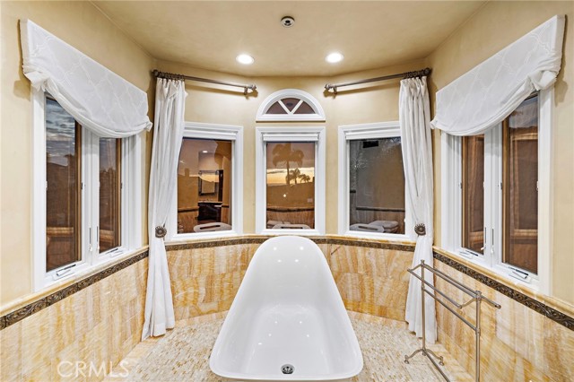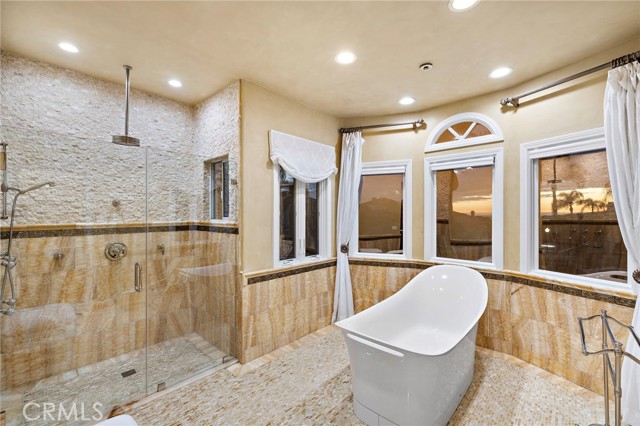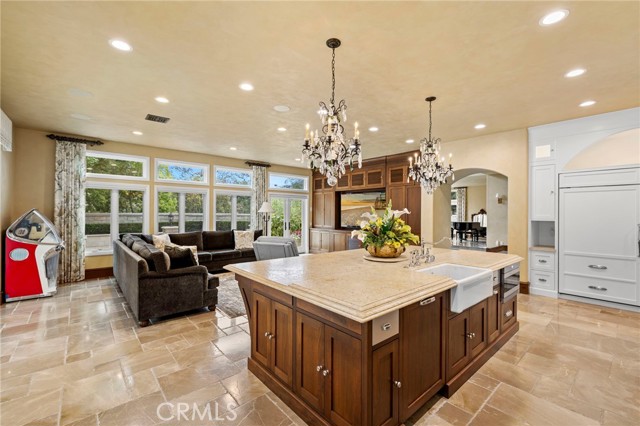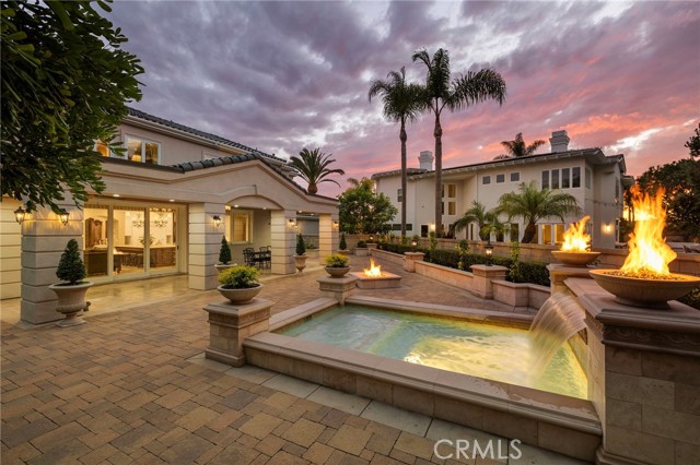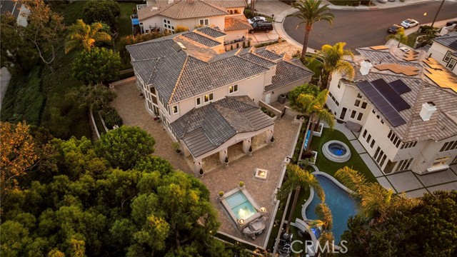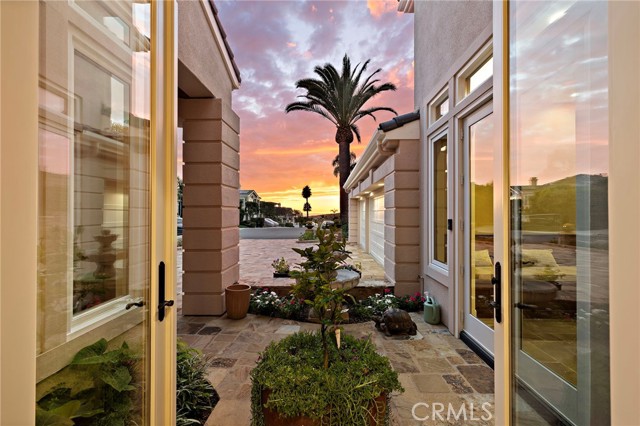 Within the guard-gated community of Ocean Ranch, this expanded & remodeled home blends refined craftsmanship with everyday functionality, offering a seamless flow between indoor & outdoor living. A custom wrought-iron and glass entry opens to Italian stone flooring throughout the main level, Venetian plaster walls, and walnut details carried throughout the home. The main floor features a large guest suite with a ensuite bath and walk-in closet—ideal for guests or multi-generational living. A versatile piano room or library offers an elegant setting for music, reading, or quiet relaxation. At the heart of the home, the reconfigured expanded kitchen showcases an oversized island with leathered limestone countertops, custom walnut cabinetry, a walk-in pantry and an added powder room. Top-tier appliances include a Viking 60” gas range with double ovens, Sub-Zero refrigeration, warming drawer, and three dishwashers by Bosch and Fisher & Paykel. Adjacent to the kitchen and family room, a generous breakfast nook with built-in seating provides a welcoming space for casual dining and connects to the main-floor laundry room and direct garage access. The expanded family room—permitted and finalized—features custom walnut cabinetry, surround sound, and Kolbe sliding pocket doors that open to the outdoor living area. The backyard is designed for year-round entertainment with a covered Ipe patio, built-in BBQ, spa, fireplace, and travertine-clad planter walls. Interlocking pavers surround the home, complementing the natural-stone driveway and newly refreshed landscaping with updated irrigation. Upstairs, the primary suite features a step-down retreat, built-in entertainment center, dual walk-in closets with custom built-ins, and a luxurious yellow-onyx bath with dual vanities and refined finishes. An additional media / bonus room with French doors to a Juliet balcony captures Catalina Island views and offers flexible living space. Every system has been thoughtfully upgraded, including dual HVAC with new ducting, epoxy-coated plumbing, a 75-gallon water heater, and eight security cameras. The garage includes new LiftMaster openers, a Tesla charger, and overhead storage. Recent updates include a new roof and underlayment, full exterior paint, Andersen Renew casement windows and French doors, and refinished hardscape throughout. Minutes from world-class beaches, Dana Point Harbor, and award-winning schools, this exceptional home embodies coastal luxury and timeless design.
