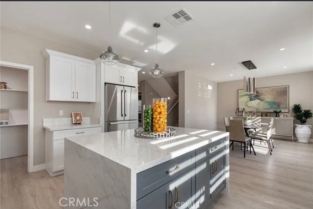 Welcome to 355 S Cypress Street. Located in the beautiful city of La Habra! It's the Largest floor plan in the community. High ceilings throughout the home makes the entire condo feel extra spacious. Numerous windows throughout which allows for natural light. Wonderful kitchen opens to an enormous dining room. Kitchen has soft closing drawers and cabinets. Large kitchen with quartz countertop and a large waterfall island. Brand new appliances (dishwasher, stove, microwave). Vinyl Flooring throughout. Large First Floor Suite with Den. Enormous Great Room. Two Bedrooms and Loft upstairs. Primary Bedroom has two closets. Primary Bathroom has dual sinks and walk in shower. Balcony/Deck on Third Floor has panoramic view of the neighborhood and hills. Large Laundry Room. 2 Car Direct Access Garage. Solar panels help lower electricity bill. Community has numerous guest parking and BBQ/Picnic area. Conveniently located near restaurants, shopping centers, markets, schools, parks, and more. Easy access to the 57, 5, and 91 Freeways. The homeowner is an interior designer. Over $150,000 in home upgrades, including Italian porcelain accents throughout. Pictures just do not capture the fine detail and craftsmanship!