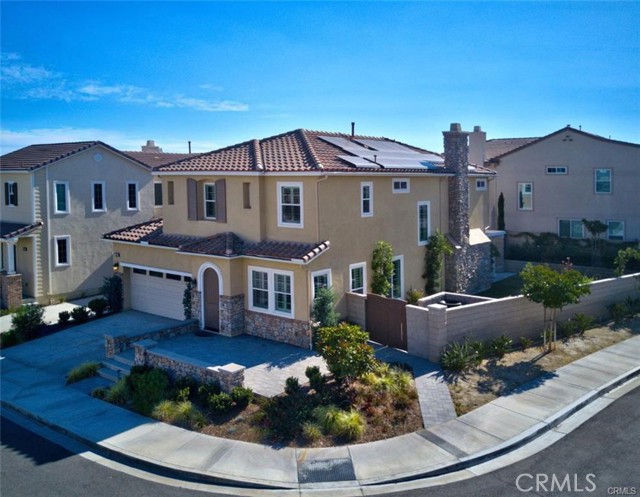 This stunning 4-bedroom Toll Brothers home at the Vista Del Verde is exactly what you've been waiting for! Nestled on a spacious corner lot, this beautifully upgraded residence exudes elegance as you approach. Step through the charming front porch and arched entry into a welcoming formal living and dining room. The rich espresso wood flooring flows seamlessly throughout the first floor, complemented by crown molding and plantation shutters that enhance the home's refined ambiance. As you continue through, you’ll find a spacious great room featuring a cozy family room with a fireplace and built-in entertainment center, a bright breakfast nook, and a chef’s dream kitchen. The kitchen boasts gleaming granite countertops, beautiful espresso wood cabinetry, and high-end stainless steel appliances, including a double oven, gas range, built-in microwave, and dishwasher. A large walk-in pantry, along with ample cabinet and counter space, adds to the home’s functionality. French doors open to a covered patio, expanding your living space outdoors. The backyard is perfect for entertaining, featuring a built-in BBQ island with a firepit, along with a large grassy area that offers plenty of room for a pool. Upstairs, the expansive master suite provides space for a home office and includes a luxurious en-suite bathroom with a soaking tub, walk-in shower, double vanity, and an enormous walk-in closet. Two additional secondary bedrooms share a full bathroom with a double vanity, and the fourth bedroom has its own ensuite bathroom. All bedrooms are equipped with plantation shutters and cooling ceiling fans. Plus, enjoy the convenience of an upstairs laundry room! This home is not only stylish and functional but also energy-efficient! A large array of solar panels on the roof, combined with a Tesla Powerwall in the garage, ensures significant energy savings for the future owner. These eco-friendly features provide sustainable power, reduce utility costs, and offer backup energy during outages, making this home as practical as it is beautiful. This home offers the perfect blend of style, comfort, and functionality. Don’t miss out – make it yours today!