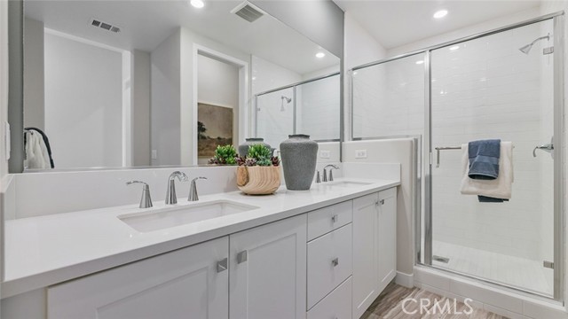 Upstairs, the third floor includes two bedrooms that flank a spacious loft with an attached deck. The highlight is the luxurious owner’s suite, complete with a spa-inspired bathroom and a walk-in closet. This home is part of an eight-unit building, yet it occupies one full side and offers its own private entrance—providing the feel of a standalone home. Amaris is a new community of stacked flats in Luna Park at Great Park Neighborhoods in Irvine, CA. Residents enjoy active lifestyles with fantastic onsite amenities, including a sparkling swimming pool, clubhouse, multiuse trails and much more. The 5 and 405 freeways offer simple commutes and travel, and eligible students will attend award-winning schools in the Saddleback Valley Unified School District. The Irvine Spectrum Center provides convenient access to the best of local shopping, dining and entertainment.