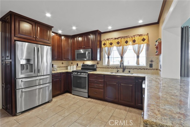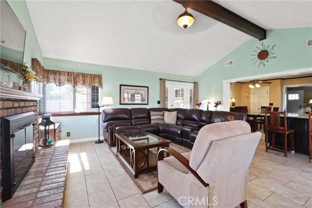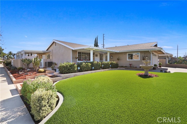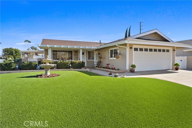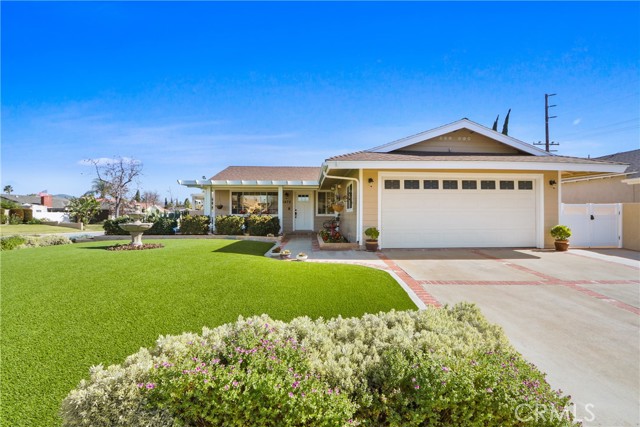 Beautifully upgraded home in Yorba Linda offering 4 bedrooms, 2 bathrooms, and approximately 1,843 square feet of living space on a generous 7,800 square foot corner lot. The inviting living room sets a warm tone, leading into a well-appointed kitchen featuring custom cabinetry, granite countertops, stainless steel appliances, a pantry, and a breakfast bar that opens seamlessly to the family room. The family room showcases vaulted ceilings, a cozy fireplace, and direct access to the outdoor living spaces—perfect for embracing the best of California living. The spacious primary suite includes an en suite bathroom, while three additional bedrooms provide flexibility for family, guests, or a home office. The secondary bathroom has been tastefully remodeled with granite countertops, custom cabinetry, and added storage.Recent upgrades include a newer roof (approximately 4 years old), updated windows, freshly painted exterior, upgraded HVAC system, tile flooring, scraped ceilings, recessed lighting, ceiling fans throughout, crown molding, and Newer Front Door. Designed with entertaining in mind, the property features a charming front porch, covered patio, and a beautifully paved courtyard. Both the front and backyard offer low-maintenance landscaping with artificial turf. Additional highlights include RV parking, a 2-car attached garage, an expansive driveway, and quality brickwork and block wall fencing. Conveniently located near shopping, dining, schools, and more. Hurry... this home will not last.