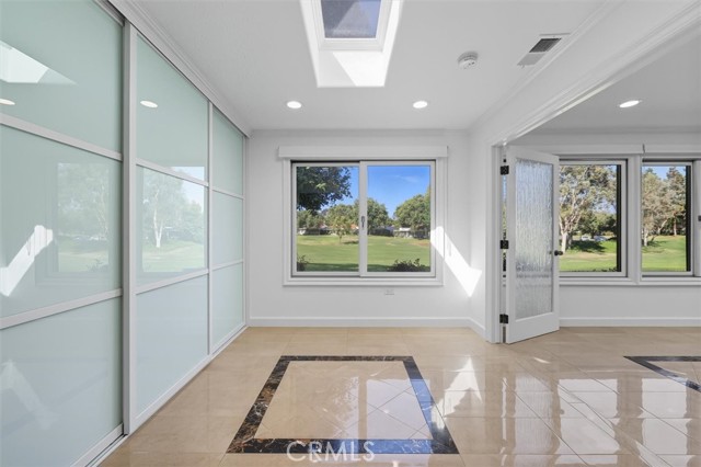 Golf course views and resort-style living await in highly desirable Laguna Woods Village 55+ gated community. This single-level Casa Rosa model (2 bed/2 bath) home. Curb appeal pops with professionally designed landscaping, and inside you’ll find two spacious primary suites, a comfortable family room/den plus a separate living room—ideal for hosting or just relaxing. A permitted enclosed patio captures fairway vistas, complemented by a sunny, outdoor area to enjoy the trees and surrounding hills. Thoughtful upgrades include smooth ceilings, fresh paint, custom Andersen dual-pane windows, updated electrical panel, newer A/C motor, appliances, and a newer garage door with built-in storage. Practicalities are covered with central heat and air, an electric water heater, and a convenient laundry area with extra storage and hookups—plus direct access from the garage into the home. You’re also just steps from the 9-hole executive course. Enjoy the Laguna Woods Village lifestyle: HOA covers landscaping and roof repairs, and residents enjoy resort-style amenities—2 golf courses (27-hole championship + 9-hole executive), multiple pools, pickleball and tennis, 3 fitness centers, 7 clubhouses, art and woodworking studios, 200+ social clubs, classes, and more. All this only ~15 minutes to Laguna Beach. Comfort, views, and convenience—don’t miss it.