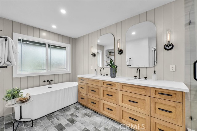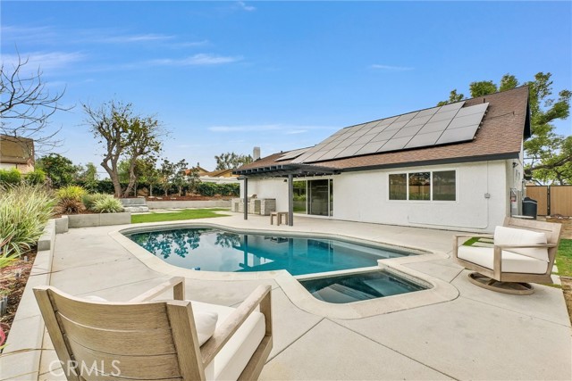 This stunning 4 bedroom, 3 bathroom Dual Master pool home is located on a completely flat half-acre lot at the end of a quiet cul-de-sac. Offering ample space for RV or boat parking, horses, and more. Upon entering the property, you'll be welcomed by vaulted ceilings, abundant natural light, and carefully curated designer finishes. The fully remodeled kitchen features custom oak cabinetry, a large island, stone backsplash, and high end stainless-steel appliances. The home offers two luxurious primary suites—one upstairs with a spa-like bathroom, walk-in closet, beverage center, and new washer and dryer. Another primary is downstairs with a floating double vanity and custom tiled shower. All bedrooms feature wide plank white oak flooring and generous closet space. Step into your resort-style backyard, complete with a newly plastered pool and spa, built-in gas fire pit, covered patio, BBQ island (now converted to natural gas), pool fence, and new wireless pool controller, lights, and pool sweep. The outdoor space has been extensively enhanced with stonework, landscape lighting, a new irrigation system with a smart sprinkler box and timer, new plants, tree removal, and borders around flower beds. Ready for your stables, sport court and other outdoor activities. Upgrades continue throughout the home with a New Paid Off solar system, custom closets, attic fan, soft water system, solar shades, EV chargers, 2 Tesla Powerwalls, and insurance-grade water flow monitoring (Flo system). With a three-car garage, sparkling pool, and access to award-winning schools, this one-of-a-kind property offers the ultimate in comfort, style, and functionality. This is California living at its finest!