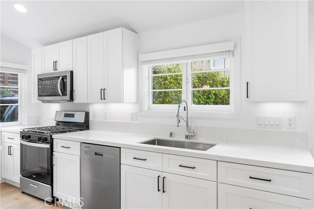 Charming Standalone Laguna Beach Cottage Near the Beach! Tucked away on a shared lot yet completely standalone, this beautifully renovated front cottage offers the privacy of a single-family home just blocks from the stunning shores of Laguna Beach. With 2 bedrooms and 1 bathroom, this inviting retreat has been thoughtfully updated with new plumbing, electrical, roof, and windows, blending modern convenience with timeless coastal charm. Step inside to find hardwood floors throughout, an airy living space with open-beamed ceilings, and a cozy fireplace that sets the perfect ambiance. The seamless flow between the living room, dining area, and kitchen makes this home feel both spacious and welcoming. The kitchen is a dream, featuring stainless steel appliances, a farmhouse sink, and recessed lighting. Sunlit bedrooms offer built-in storage, a charming bay window, and plenty of natural light. Outside, a white picket-fenced front patio with beautiful brickwork creates a picturesque space for relaxing or entertaining. While the garage provides excellent storage and includes a washer/dryer, it is not available for parking. However, convenient street parking is available, including a space right in front of the home. With the beach less than half a mile away, this delightful cottage is the perfect place to enjoy the best of Laguna Beach living!