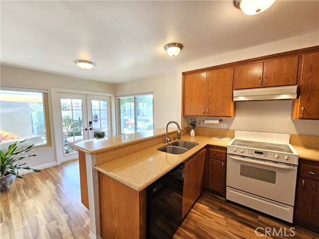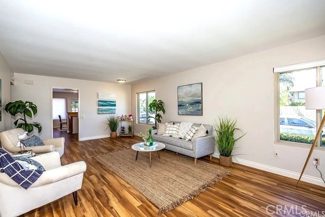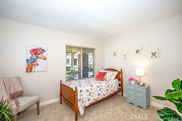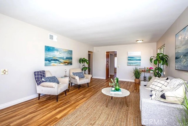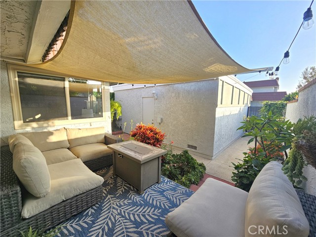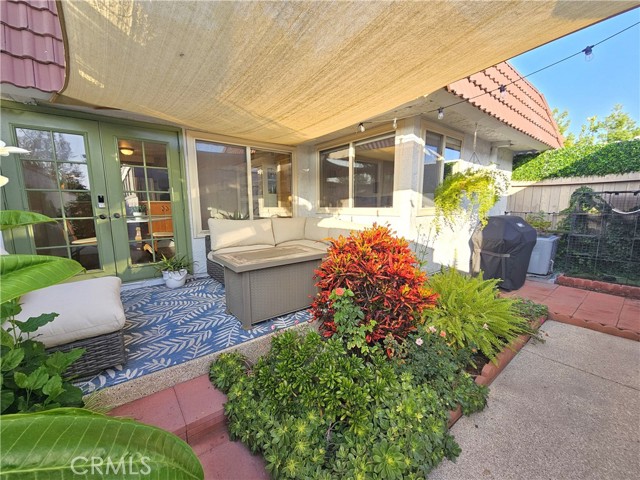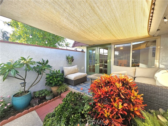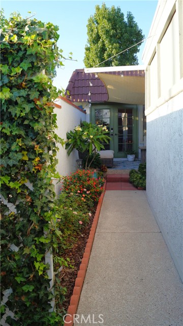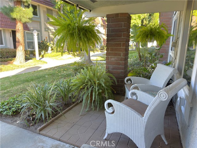 OPPORTUNITY AWAITS IN THE HIGHLY SOUGHT-AFTER, RESORT-LIKE COMMUNITY OF CYPRESS VILLAGE! THIS POPULAR SINGLE-LEVEL MODEL BOASTS 2 BEDROOMS, 2 BATHS, A PRIME GREENBELT LOCATION WITH 1,142 SQFT, AND IS PET FRIENDLY! This home offers additional privacy as an end unit, is surrounded by lovely, lush landscaping, and has a delightful, covered front porch with enough room for seating. Upon entering, discover a spacious living room with gorgeous wood-look luxury vinyl plank flooring, a gas fireplace for those cool evenings, energy-efficient vinyl windows, a smooth ceiling, and an abundance of natural lighting throughout. You will appreciate a lovely dining space before entering the kitchen. Here you will find upgraded cabinetry, with Corian countertops, quality appliances including a Samsung French door refrigerator, & an interior laundry closet that includes a newer front load washer & dryer. A wonderful feature of this floor plan is an additional gathering space or family room off the kitchen with built-in cabinets, French doors, & stunning views of the backyard retreat. Be prepared to love the spacious primary suite, where you will find enough room to accommodate king-size furniture, office furniture, a triple-wide floor-to-ceiling closet, and more lovely views of the private patio landscaping. The sparkling clean 1.5 baths have upgraded cabinetry, upgraded lighting, tile flooring, and a walk-in shower. Other Highlights: Additional guest bedroom, dual-pane tinted windows for extra privacy, quality flooring & window treatment, air conditioning, ample linen cabinetry, and a backyard patio thoughtfully redesigned as a peaceful haven with beautiful plants, flowers, and a sail shade cover. Enjoy relaxing & dining alfresco while taking in the gorgeous garden and greenery. You will also appreciate easy access to a two-car garage with built-in shelving for storage. Award-winning local schools are Patton Elementary, Bell Intermediate, & Pacifica High School, and all are highly rated 9's & 10's. Enjoy close proximity to shopping, dining, LA Fitness, parks, Costco, the Cypress Trader Joe's, Disneyland, Knotts Berry Farm, and easy access to the 405 & 22 Fwys! The wonderful community of Cypress Village has 3 Pools, a Huge Spa, a Kiddy Pool, Tennis, Pickle Ball, and Many Lush Greenbelts & Meandering Pathways!! Enjoy all these amenities and easy living in this premier community with the world-famous beaches of Orange County just a few miles away. Welcome Home!
