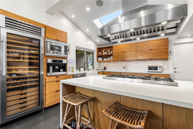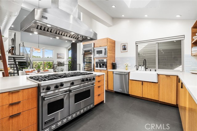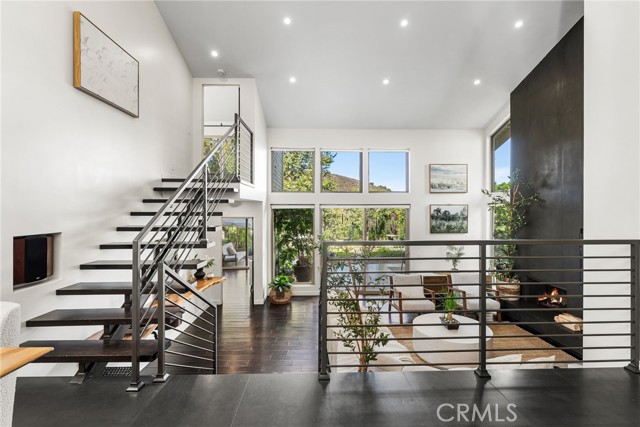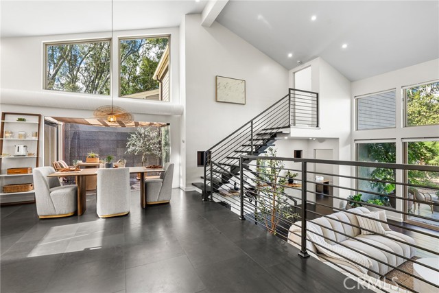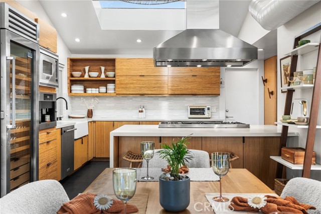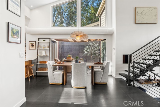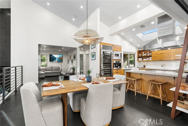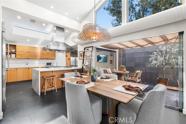 Perched in the exclusive Ridgeview enclave of Turtle Rock, this move-in-ready architectural stunner embodies the pinnacle of modern Irvine living. Spanning 2,173 square feet, the home showcases four bedrooms, three designer baths, and an effortless fusion of elegance and comfort. Walls of glass invite breathtaking canyon vistas, while its premier location near Sand Canyon Reservoir and Strawberry Farms Golf Club places nature, recreation, and sophistication at your doorstep—all within reach of Irvine’s award-winning schools. Few homes capture beauty, serenity, and style quite like this one. Completely reimagined with high-end materials and sleek modern design, this residence blends comfort, style, and craftsmanship at every turn. The chef’s kitchen is a showpiece, featuring a full suite of Viking appliances—including a built-in refrigerator, 60-inch professional range, microwave, dishwasher, and 250-bottle wine refrigerator—along with a built-in Miele espresso machine for the perfect morning indulgence. Quartz countertops, a glass backsplash, and custom lift-up cabinetry create a refined aesthetic, while basalt and custom wood flooring flow seamlessly throughout. The kitchen opens to both informal and formal dining spaces that flank a dramatic atrium water feature, where water cascades gracefully down a nine-by-ten-foot wall; glass walls surrounding these dining areas flood the space with natural light and provide effortless indoor-outdoor access. The living room’s basalt-clad fireplace serves as a striking focal point, and three sets of disappearing glass doors open to expansive canyon views and a beautifully designed backyard retreat featuring multiple seating areas, lush low-maintenance landscaping, and a spacious patio that extends the home’s contemporary aesthetic outdoors. The home offers dual primary suites—one on each level—for flexibility and privacy, with the upper suite showcasing a newly remodeled spa-inspired bath complete with a central rain shower beneath an operable skylight, a sleek quartz-topped dual vanity, and a private balcony overlooking the serene backyard and canyon. The fourth bedroom, currently used as a den, A state-of-the-art security system ensures peace of mind, and residents enjoy access to Ridgeview’s community pool and sports courts. With its refined finishes, modern flow, and seamless indoor-outdoor living, 7 Morning Sun is a move-in ready home designed for those who value luxury, innovation, and exceptional design.