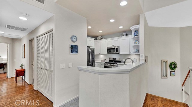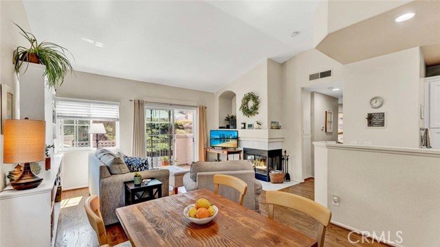 Beautifully Updated Carriage-Style Home in Gated Viewpointe North. Welcome to this spacious 2-bedroom, 2-bath home in the desirable Viewpointe North community! With no one above or below, this carriage-style residence offers privacy, comfort, and a bright open layout with vaulted ceilings and abundant natural light. The remodeled kitchen with stainless steel appliances flows seamlessly into the dining and living areas, complete with recessed lighting, wood flooring, cozy fireplace, and a private balcony surrounded by trees—perfect for a relaxing “treehouse” feel. The primary suite features a double-door entry, vaulted ceilings, two mirrored closets, and an updated bathroom with dual-sink vanity, private toilet area, and remodeled walk-in shower. The secondary bedroom is generously sized and served by a full guest bath with tub/shower combo. A convenient indoor laundry closet, direct-access garage plus designated covered carport, and thoughtful upgrades add everyday ease. Viewpointe North offers resort-style amenities including multiple pools, five spas, clubhouse, and beautifully maintained grounds. Ideally located on a single-loaded street and within walking distance to Canyon Rim Elementary, hiking trails, Anaheim Hills Reservoir, and local parks, this home combines the best of privacy, convenience, and community living.