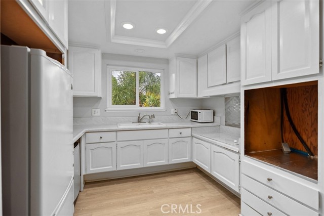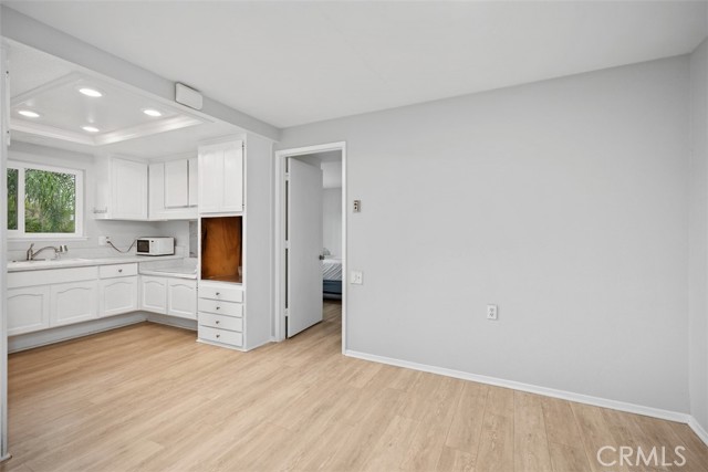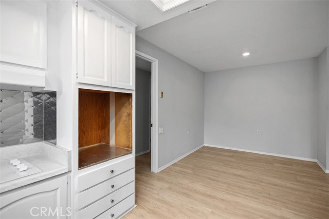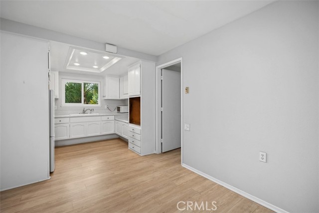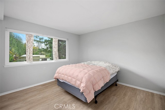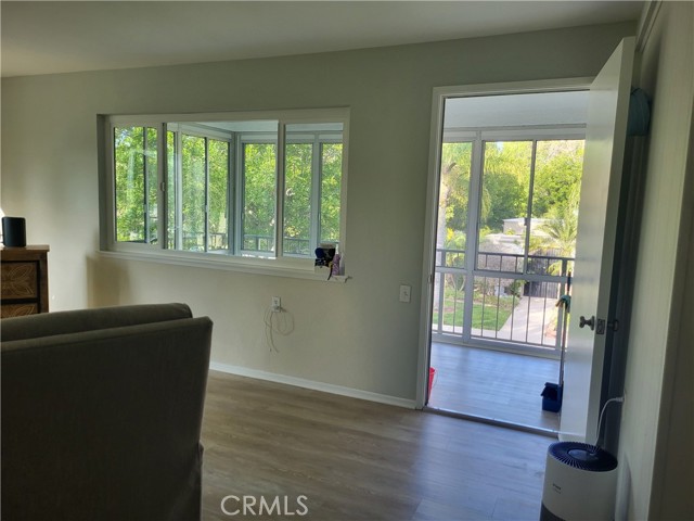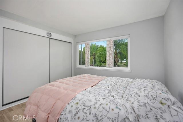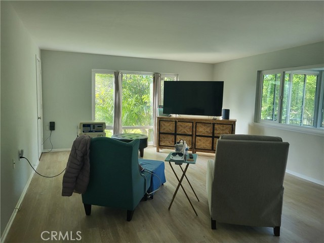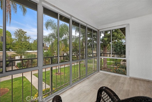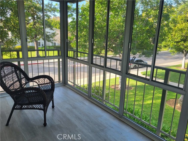 Walk to Beautiful Aliso Creek. Enjoy peaceful, tree-filled scenery from this upper-level Cadiz co-op. Lots of natural light fills this home and relax in nature from the comfort of your own living space. Updates include fresh interior paint, smooth ceilings, dual-pane windows, and glass enclosed balcony that expands the living area. The wood floor is approximately 770 square feet and continues onto the enclosed balcony. This home offers comfortable living space enhanced by large windows and an abundance of natural light. The spacious living room features 2 large windows. The patio is an ideal spot for reading and relaxing. The flooring is practical and easy to maintain, an attractive wood-look laminate in most rooms. The kitchen retains its original charm and includes recessed lighting, new oven and fridge will be installed, and a pleasant window over the sink, with an adjacent dining area perfect for everyday meals. The bedroom is a comfortably sized and a tree top view. The large en-suite bathroom holds ample storage. Residents enjoy access to golf courses, pickleball and tennis courts, fitness centers, swimming pools, clubhouses, and an exceptional variety of clubs, classes, and social activities and over 250 clubs.