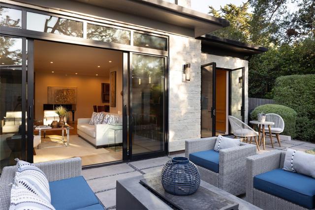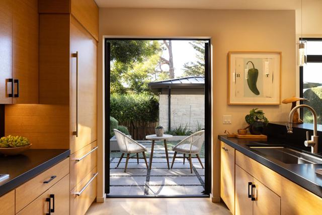Designed by acclaimed architect Eric Miller, this luxury 3-bedroom, 3.5-bath residence offers approx. 2,004 sq ft of finely curated living on a rare 5,000 sq ft corner lot in Carmel's Golden Rectangle, just two blocks to the beach and one block to Ocean Avenue. Completed in 2020, the home embodies sophisticated coastal living with clean contemporary lines and perfect proportions. Expansive windows and walls of glass flood the interiors with natural light, highlighting rich hardwood floors, stone accents, and bespoke finishes. The airy open-concept design features a chef's kitchen, elegant dining, and a stylish living room anchored by one of two fireplaces. Upstairs, the serene primary suite enjoys filtered ocean views and glimpses of Pebble Beach, while two guest suites offer privacy and comfort. Radiant heat, metal roof, mini-split A/C, and detached garage provide modern convenience. Outdoor terraces extend the living experience, creating ideal spaces for entertaining or quiet retreat. With room to add an ADU and set in Carmel's most sought-after location, this home is a rare opportunity to own a modern coastal sanctuary of exceptional quality and timeless design.