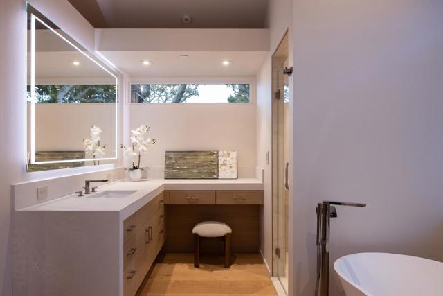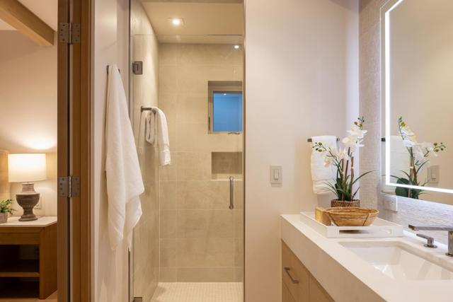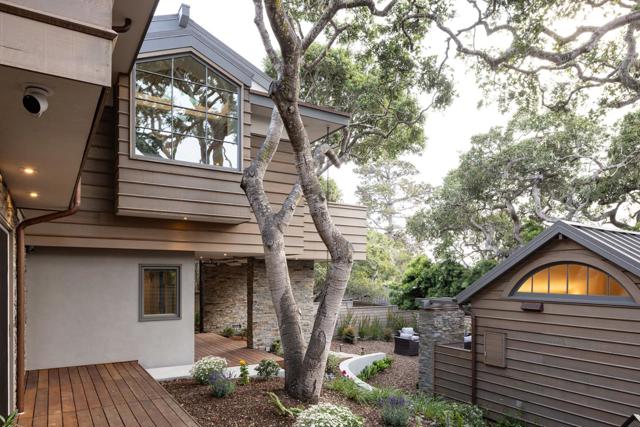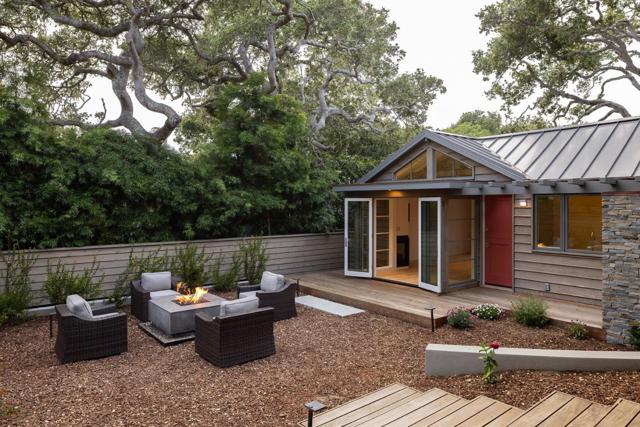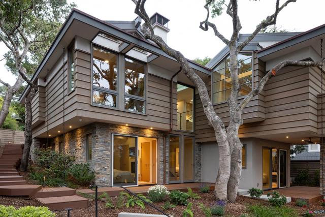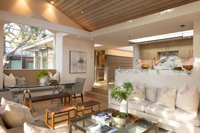 An exceptionally rare opportunity to own a soft contemporary new construction in the heart of downtown Carmel-by-the-Sea. Expertly designed by renowned architect Thomas Bateman Hood and constructed by acclaimed Carmel builder, Wayfinder Development. A step-less entry leads into the foyer, where dramatic floor-to-ceiling windows frame striking ocean views. The 2,202 sq ft main house features a thoughtfully designed layout, with a spacious great room, open-concept kitchen, powder room, and primary suite on the main level all offering beautiful water vistas and seamless flow. The lower level includes a comfortable family room and two guest suites, each opening to private decks and the landscaped backyard. A separate 570 sq ft Accessory Dwelling Unit provides flexibility for guests, a home office, or a caregiver. Set on an oversized 6,298 sq ft lot, the property is designed for both privacy and effortless indoor-outdoor living, with generous space for entertaining across both structures. Built to the highest standards of performance and design, the home has never been lived in and is entirely turn-key, with numerous upgrades since its first sale. Enjoy your best life living a block from shops and restaurants of the Village with the sands of Carmel Beach a short leisurely stroll away.