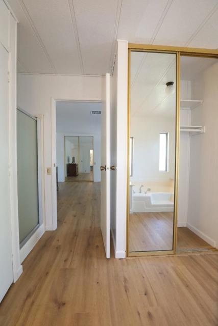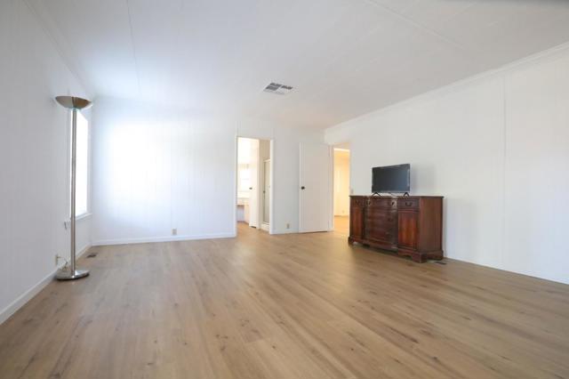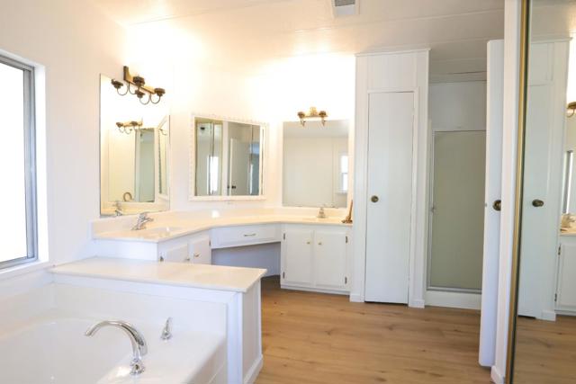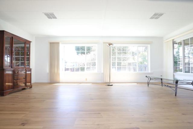 Explore this stunning 1975 home in the Quail Hollow Community. Discover the charm of this approximately 1,848 sqft residence, featuring 2 bedrooms and 2 bathrooms. Situated on a corner lot, its conveniently located near guest parking. The home has new waterproof laminate flooring throughout, complemented by new baseboards. The living room includes laminate flooring and a closet, while the family room is equipped with a ceiling fan with lights and a skylight. The kitchen showcases stainless steel appliances such as a microwave, stove, refrigerator, dishwasher, electric oven, garbage disposal, and features a pantry, upgraded single lever faucet, and ceiling lights. The master bedroom offers a walk-in closet and a mirrored closet. The guest bedroom includes a ceiling fan with lights and a skylight. The master bathroom features double sinks, a tub, a shower, and cabinets, while the guest bathroom offers a shower, tile flooring, and cabinets. Outdoor amenities include a backyard with a lovely garden and BBQ area, central air conditioning and heating. A utility room with laminate flooring and a dryer included. The home also features double-pane windows and a new ceiling and paint in the sunroom. Conveniently located near freeway 280 and shopping centers. Stop by today!