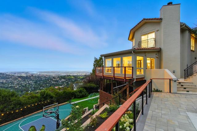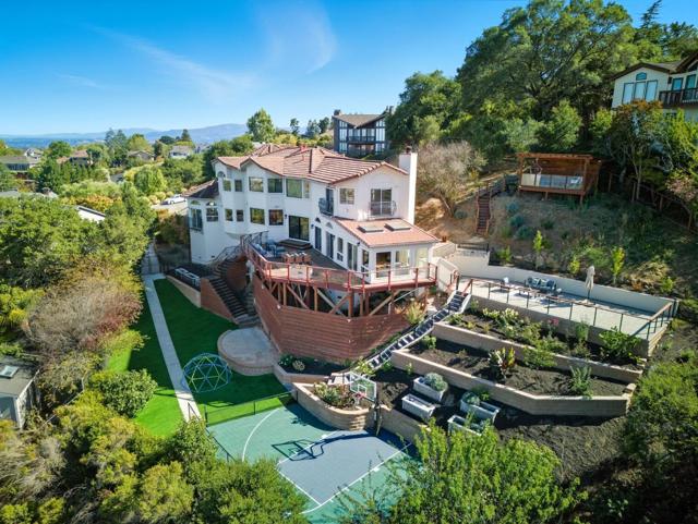 Welcome to the colossal view home of your dreams! 1 Lewis Ranch Road has a rich history of loving families creating core memories that echo through its grand halls. This 6 bedroom, 6.5 bathroom estate spans an impressive 5,600 sqft and sits on nearly an acre of land. Unlike anything else in San Carlos, grand entrance, original marble throughout, and sweeping views in every major bedroom and living space. Natural light pours in, dancing across the floors and filling the home with warmth. Outside, enjoy a 3 car garage with an attached gym, elegant front double doors, and a lush, mature garden overflowing with vibrant flowers, and trees. The backyard offers a fully fenced sports court in pristine condition, expansive turf, a tiered garden system, and a scenic lookout ideal for morning tea or an evening glass of wine. A recent $1.5M remodel transformed the interior, including a brand new chefs kitchen with top of the line appliances and a large Carrara marble island. The remodeled living room, formal sitting area, and dining space shine with designer wallpaper and a newly refinished fireplace. The primary suite is the ultimate retreat, boasting an oversized walk-in shower, freestanding soaking tub with 360 degree views. Families will love the access to highly acclaimed schools.