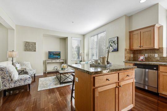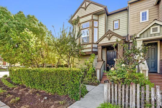 Bright corner tri-level townhome with 3 bedrooms and 3.5 bathrooms located in a desirable Sunnyvale community. The first level features a spacious bedroom with a full bathroom, inside laundry, and access to the attached two-car garage. The second level offers an open kitchen with stainless steel appliances, large island, gas stove, family room, and dining area. High ceilings and large windows provide abundant natural light. The third level includes a primary bedroom with ensuite bath, an additional bedroom, and a hall bathroom with tub and shower. Convenient location close to shopping, parks, and major commute routes. Available April 1. Pets considered with owner approval on a case-by-case basis. Unfurnished. Photos shown are from prior staging