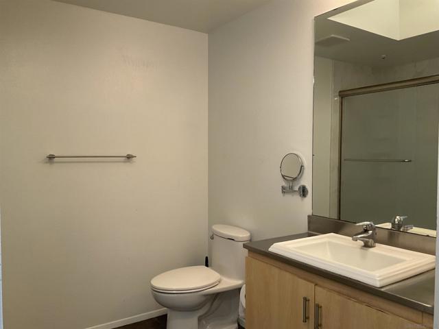 1 BR Gorgeous penthouse right in the center of Marina District. This unit was a former model and has probably best location in the complex - desired upper (4th) level, very private corner unit with only one common wall. Former model with Stainless steel countertops, appliances, custom lighting, high volume ceiling. Nice kitchen cabinets with glass inserts. Private balcony. Washer/Dryer, central A/C, ceiling fan, custom blinds, built-ins in the walk-in closet, etc. All furniture will stay and be included in the sales price. Premium corner parking spot #177 in the underground garage with easy access in & out and close to the elevator. Just steps to Seaport Village, convention center, Gaslamp district, best restaurants & entertainment. Please read Confidential Remarks.
