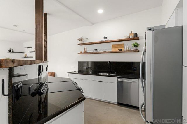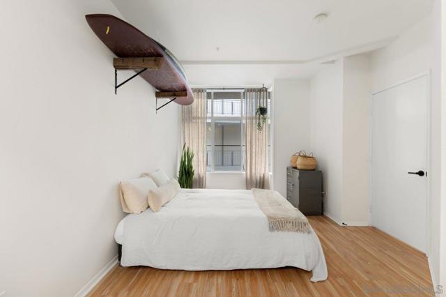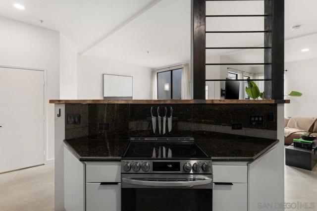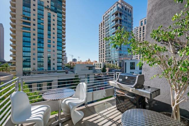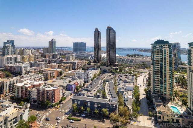 PENTHOUSE PERFECTION! This phenomenal top-floor Atria residence is a rare find, offering the ultimate in Downtown living with an open two-story layout, soaring ceilings, and a private patio tailor-made for a serene outdoor retreat above the city. The gourmet kitchen impresses with rich dark granite countertops and backsplash, stainless appliances, sleek white cabinetry, and warm wood open shelving for a perfectly curated mix of style and function. The polished concrete floors and inviting living area set a sophisticated tone. Both primary suites offer spacious walk-in closets while the spa-inspired bathrooms feature dark granite counters, white cabinetry, and matte black fixtures throughout. Additional highlights include a powder room, in-unit washer/dryer, and two dedicated parking spaces. Nestled in the heart of the Marina District, you'll enjoy effortless access to Seaport Village, the Embarcadero, Petco Park, and the vibrant Gaslamp District. Don’t miss this turnkey opportunity to own a one-of-a-kind retreat in Downtown San Diego! Residents of Atria enjoy the convenience of on-site management, fitness center, media room, and a rooftop deck complete with barbecue grills and downtown views. Located just steps from Ralphs grocery store, trendy coffee shops, a variety of restaurants, Seaport Village, and the scenic San Diego Bay, Atria offers the perfect blend of urban living and coastal charm.