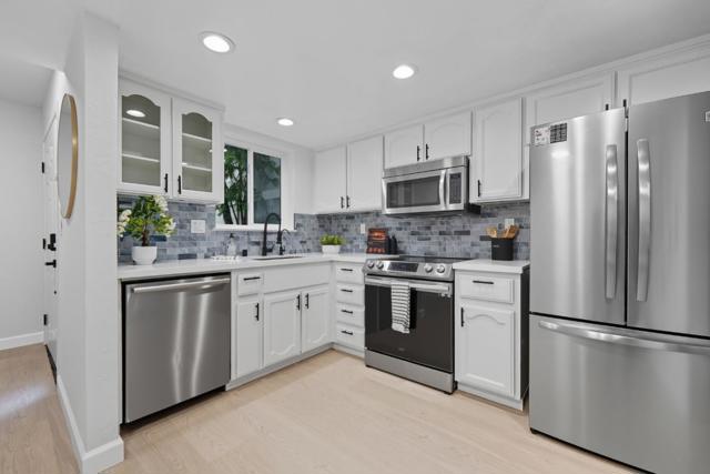 Enter this beautifully renovated home, ideally located in the heart of Silicon Valley. Featuring brand-new luxury vinyl plank flooring and an open-concept layout, this 1,345 sq ft residence offers comfortable living that truly feels like a single-family home.At the heart of the home is a chef-inspired kitchen, thoughtfully redesigned with quartz countertops, stainless-steel appliances, backsplash, and an induction cooktop. The inviting living room features a cozy fireplace, recessed lighting, and automated curtains. The bathrooms are completely updated with vanities, LED mirrors, modern light fixtures, and a spacious walk-in shower. Upstairs, two generously sized bedrooms that provide comfortable retreats. Outside, enjoy a low-maintenance expansive backyard that is perfect for relaxing. The finished garage includes an electric vehicle charger and is complemented by an additional parking space. Just minutes from Campbell Farmers Market, Los Gatos Creek Trail, and top-rated schools, including Leigh High School. Enjoy easy access to shopping and dining at The Pruneyard, Santana Row, Valley Fair, Hwy 17, Hwy 280, San Tomas Expressway, and major tech employers. This is a rare chance to own a fully upgraded home in one of Silicon Valley's most sought-after neighborhoods.