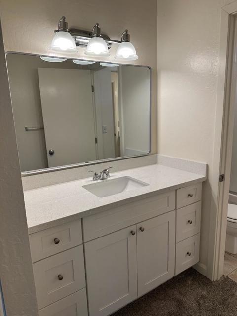 Campbell townhouse available now. Spacious living/dining room with fireplace and slider leading to private back yard. Kitchen has maple cabinets, granite counters, and stainless appliances. All bathrooms have brand new cabinets, counters, sinks, faucets, and mirrors. Upstairs bathroom has 2 separate vanity areas that share the shower/toilet. Primary bedroom is huge! Secondary bedroom is large. Laundry is upstairs with storage cabinets above. Linen cabinets. Garage is attached with direct access to unit. One assigned parking space in addition to garage. Looking for non-smokers, no pets, one year lease.