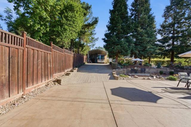 Welcome to this inviting 3-bed, 2-bath home sitting on almost a 1/2 acre. If you need RV/Boat or covered storage, it's here, and easy access drive from the front gate to the 14ft high covered shop. This home is approximately 1,900 sq ft, and offers a blend of comfort and functionality. The kitchen features a gas cooktop, granite counters, island bar and wet bar. There is a separate dining area and extra pantry storage. The open-plan kitchen/living room combo is perfect for gatherings and features a cozy wood stove adding warmth to the home. The flooring is hardwood throughout living areas, laminate in the bedrooms and tile in the laundry & baths. To add a feeling of spaciousness living area has high and open beam ceilings, and kitchen features a bay window. This home has A/C and ceiling fans throughout and Solar power as an energy-efficient feature. You don't want to miss the outdoor California Kitchen just steps from the living room. This area has plenty of seating around the table, and bar countertops while you enjoy gathering with family and friends around the outdoor cooktop or enjoy a cold drink from the fridge. Cool evenings can be enjoyed around the outdoor firepit. Property has multiple fruit trees & garden boxes and plenty of room left for your imagination.