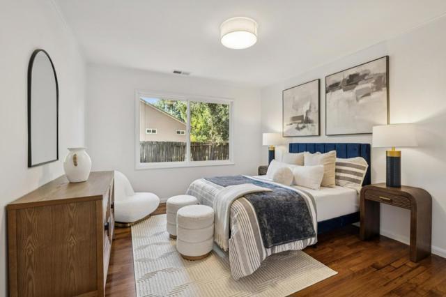 In the sought-after Flood Park neighborhood of Menlo Park, this charming 3-bedroom, 1-bath home offers 1,200 sq. ft. of thoughtfully designed living space on an oversized 9,339 sq. ft. lot - a rare opportunity to expand, enjoy an expansive backyard, or create your dream home. Hardwood floors, abundant natural light, newer windows in all bedrooms, central A/C, and a flowing floor plan that balances comfort and functionality. The light and bright living/dining combo is accented by a fireplace and picture windows overlooking the front gardens. The updated kitchen features a large center island with bar seating, modern finishes and stainless steel appliances. The remodeled bath offers convenience, while the attached 1-car garage provides easy access. Outside, the expansive backyard features generous patios and endless possibilities for entertaining or unwinding. Close to top-rated Menlo Park schools, local parks, and Highway 101. This home is a true gem in the desirable Flood Park neighborhood, ready for you to move in and enjoy!