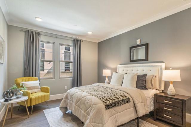 Welcome to this one-story luxury condo in North San Joses Orchard Park, once named Bay Areas Best Community of the Year. Step inside to discover a bright and airy 3-bedroom, 2.5-bath layout, thoughtfully designed with walk-in closets in every bedroom and an open-concept living space that seamlessly connects the kitchen, dining, and living areasideal for both everyday living and entertaining. The gourmet kitchen features high-end stainless-steel appliances, a generous island with a breakfast bar, and stylish pendant lighting. A delightful balcony offers the perfect spot for morning coffee. Large windows throughout the home allow natural light to flood the interior, creating a bright and airy ambiance. The two layers of windows, similar to triple-pane, offer enhanced thermal efficiency. Rich hardwood floor, elegant plantation shutters, recessed lighting, and a tankless water heater add to the homes upscale appeal. A semi-private elevator ensures security and easy access for all ages, while the peaceful, friendly community places you just steps from supermarkets, cafes, gyms, restaurants, banks, and Google shuttle stops. With quick access to HWY 880 and 101, this home truly offers the best of space, light, and location.