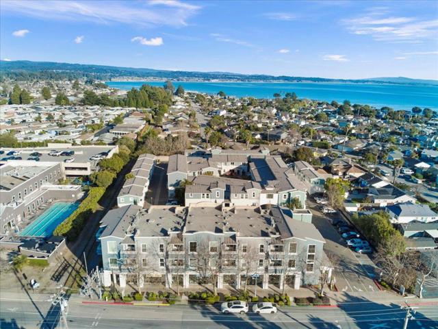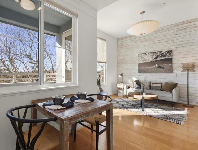 Experience the pinnacle of coastal living in this stunning top-floor condo, perfectly positioned where the charm of Capitola meets the iconic surf culture of Pleasure Point. This isn't just a home; its an elevated sanctuary designed for those who appreciate sleek, modern aesthetics and effortless proximity to the best of the Monterey Bay. This residence has been meticulously reimagined, blending industrial sleekness with organic warmth. Being on the top floor affords distant views, soaring ceiling heights and a sense of vertical freedom, allowing natural light to cascade through oversized windows. The airiness is grounded by hardwood flooring that runs seamlessly throughout, providing a rich foundation for the modern aesthetic. The walls serve as design elements, featuring custom treatments and updated textures that add sophisticated depth. Complementing these features is a suite of designer lighting, casting an atmospheric glow as the sun sets over Monterey Bay. For the culinary enthusiast, the kitchen eschews the generic for the exceptional. It features a high-performance Bertazzoni gas range and a sleek, integrated Liebherr refrigerator. Set against crisp cabinetry and premium countertops, this workspace is as functional as it is beautiful.