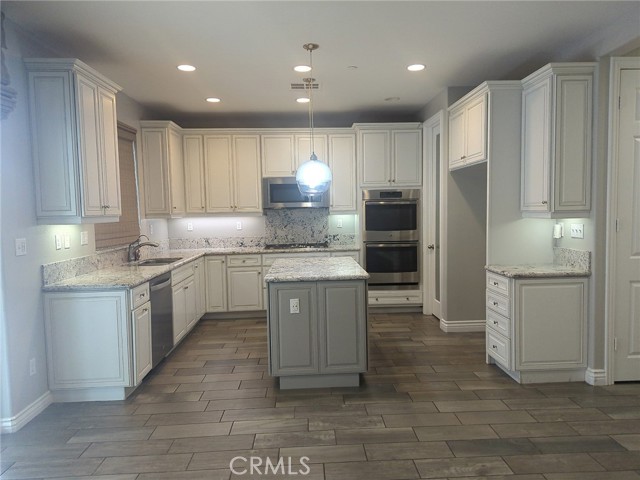 Step inside to fresh, neutral-toned paint throughout and elegant upgrades. The kitchen is a true showstopper with a center island highlighted by designer pendant lighting, a walk-in pantry, a built-in microwave, and a double oven—perfect for home chefs and entertainers alike. All spacious bedrooms are located upstairs for privacy and comfort. The primary suite features a dual sink vanity and a large walk-in closet. Additional upgrades include plantation shutters and upgraded six-panel doors throughout the home. The low-maintenance backyard is perfect for relaxing or entertaining with a covered patio, TV mount, lemon trees, and fragrant rose bushes. This home also features a whole-house water softener system, which helps reduce mineral buildup, extend the life of appliances and plumbing, and provide softer water that’s gentler on skin, hair, and laundry. Don’t miss the chance to live in this beautiful, well-appointed home within a secure and amenity-rich community. Schedule your tour today!