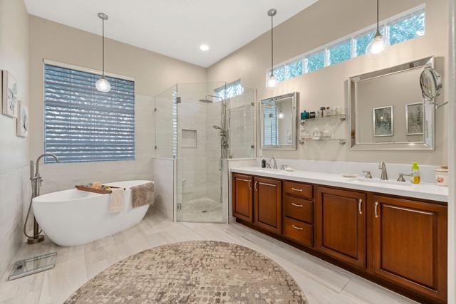NEW PRICE! Welcome to 11 Hillcrest in Montecito, Palm Desert! Embrace a lifestyle you won't want want to miss. Living in Montecito feels like a permanent vacation -- where almost every day begins with great weather, opportunity, and a sense of 'I can't believe this is home.' INCLUDES WESTERN GOLF CART W/SEATING FOR FOUR.Golf: YOUR New Morning Ritual, A scenic golf cart drive from the front gate to the lush fairways of Desert Willow -- a premier public golf experience with private-club energy. It's not just golf. Two award-winning courses, exclusive resident perks including an clubhouse w/patio restaurant & bar.Surf in the Desert? Yes....The highly anticipated DSRT Surf Park is coming in 2026, bringing with it a 5.5-acre surf lagoon. Surf perfect waves under the desert sky -- no coastline required.Retail Therapy Meets Resort Living: From El Paseo's designer boutiques to Acrisure Arena's live entertainment, Grab a coffee, breakfast burrito or croissant at IW Coffee & Chai (which is part of your new morning ritual), and endless dining options. Move to Palm Desert, and life improves.Move to Montecito, if you lived here, you would be home by now. FOUR full bedrooms PLUS a dedicated office; One bedroom could be considered an 'in-law suite', perfect set up with access to exterior and walk in closet. 3 full-car garage w/AC, Updated kitchen & spa-inspired primary bath; Pristine pool & spa surrounded by privacy; Covered patios for lounging & al fresco dining;Solar owned & leased, plus 3 Tesla Back-up batteries. The lease payment is less than your average monthly electric bill (which could range anywhere from $700-1500 in the peak summer months). Also, Solar owned for pool heat. By Appt.