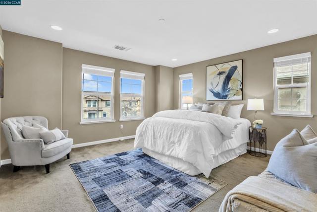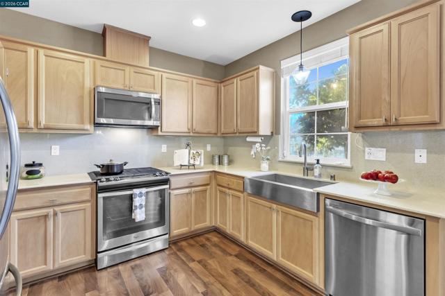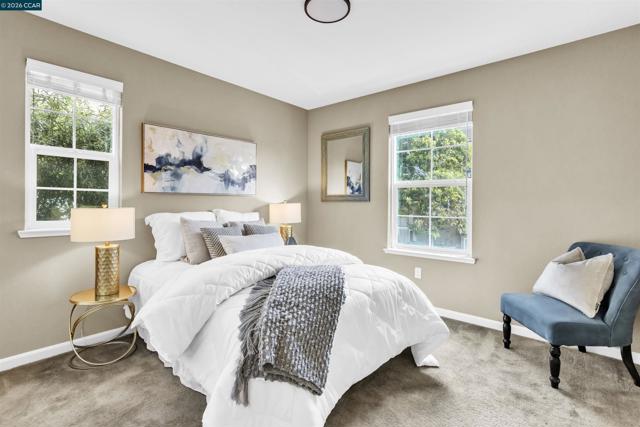 Qualifies for financing! Experience modern living in this 4-bedroom, 2.5-bath townhome in San Pablo's gated Abella Vista Community. This prime corner lot residence showcases high ceilings, rich hardwood flooring, owned solar, and low HOA. The thoughtfully designed layout offers an open-concept living with a dining area leading to a gourmet kitchen equipped with quartz countertops and full backsplash, and stainless-steel appliances. Natural light cascades into this gathering space through picture windows and a sliding glass door offering access to a quaint patio, perfect for BBQ. Upstairs, the primary suite provides a private sanctuary with a walk-in closet and an en-suite bath including soaking tub, and glass enclosed shower. Three additional bedrooms and an upstairs laundry add to the home's convenience. The two-car attached garage ensures easy parking, storage, and wired for EV charger. Ideally situated for commuters, this home is about half a mile from Transbay service to SF, with AC Transit routes to BART & key destinations. With proximity near schools, Contra Costa College, shopping, and commuter routes via Richmond Parkway, I-80, and I-580, this home delivers both style and accessibility in a well-maintained community.