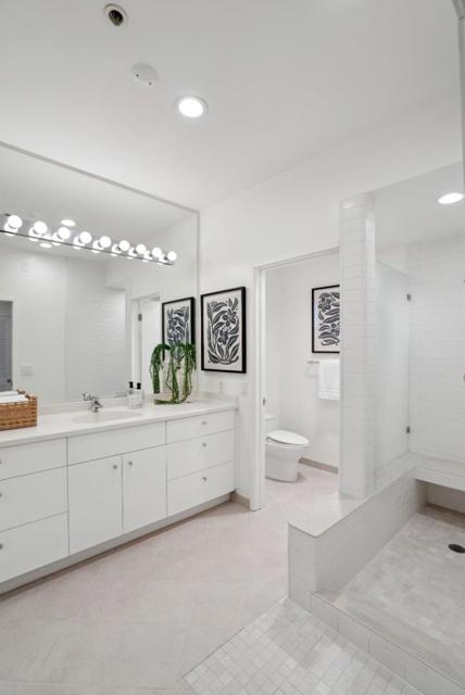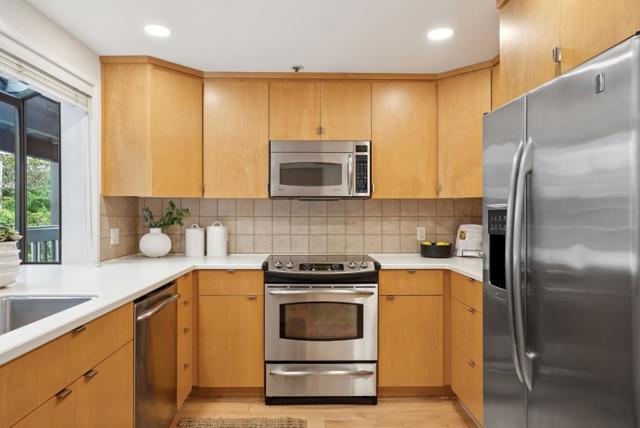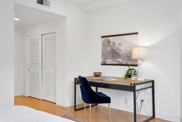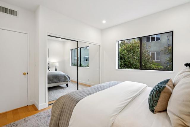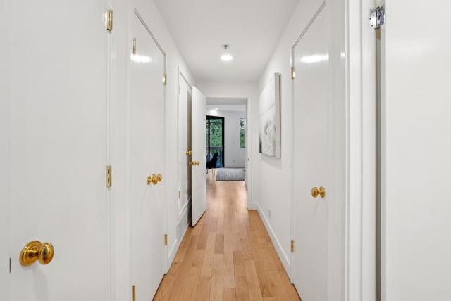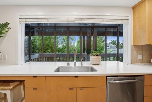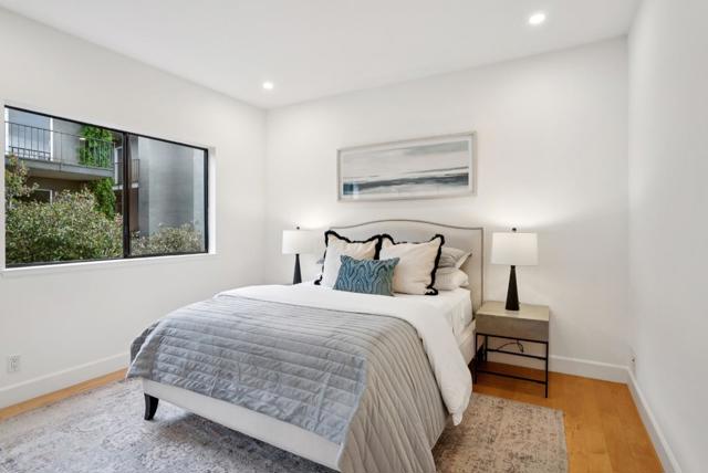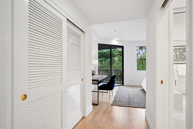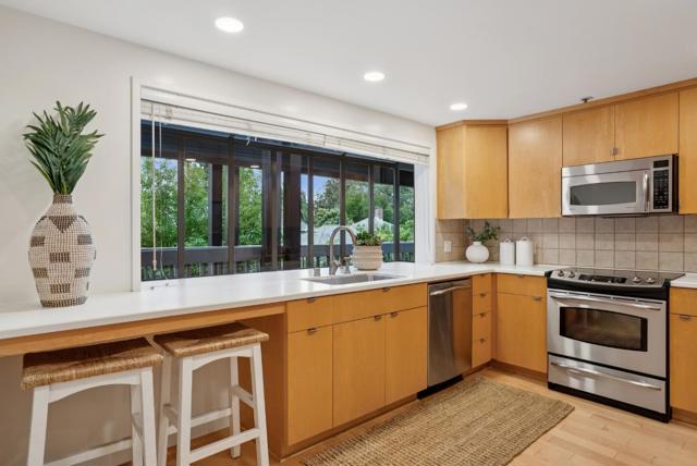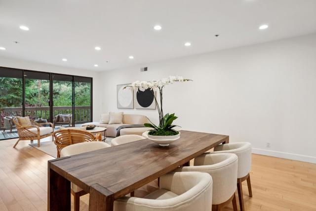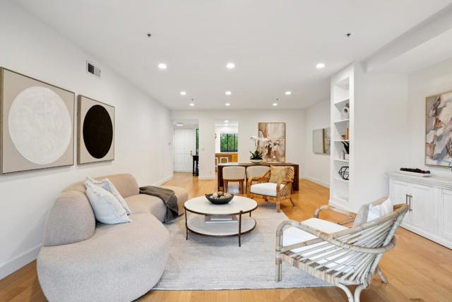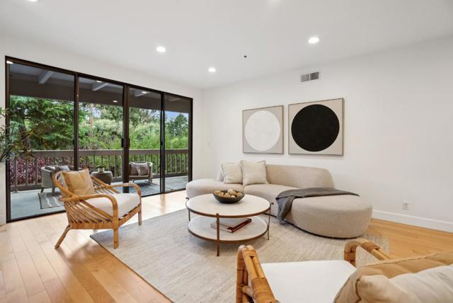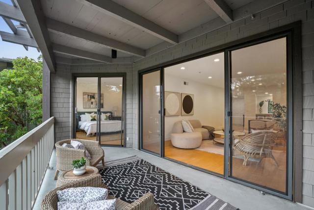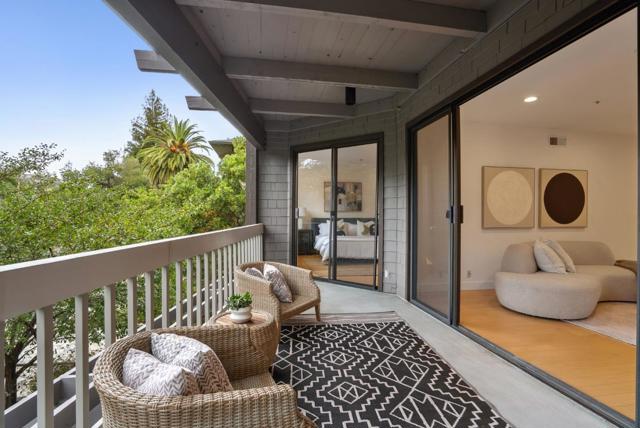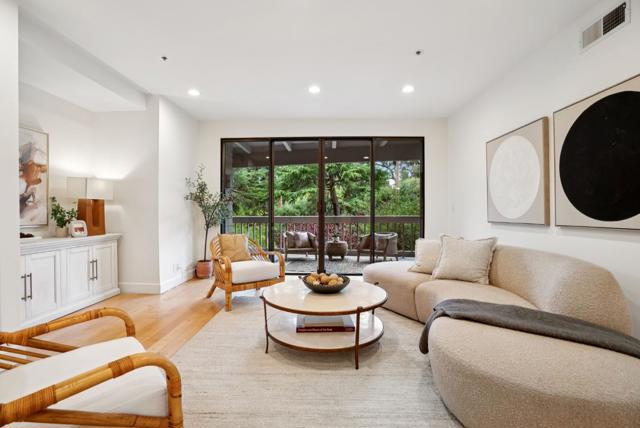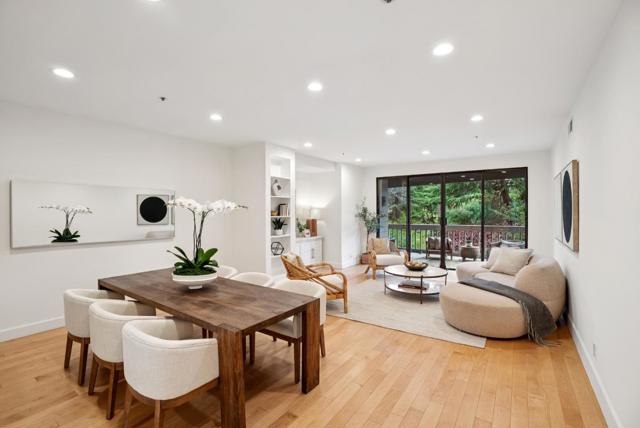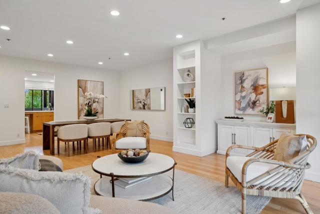 Sophisticated and rarely available, this 2nd-floor residence offers serene creekside views and remarkable privacy just three blocks from University Avenues renowned shops and restaurants. Bathed in natural light, the home showcases hardwood floors throughout, an expansive balcony overlooking open space, and a gated courtyard with both stair and elevator access. The kitchen and baths have been tastefully updated with Corian counters, while the primary suite features recessed lighting, balcony access, and a recently remodeled spa-inspired shower. A second spacious bedroom adds flexibility for guests or a home office. Modern conveniences include in-unit laundry and secure garage parking for two cars (one covered, one deeded uncovered). With only nine units, this boutique building offers a rare blend of downtown living and creekside tranquility, steps from El Camino Park, Caltrain, Stanford University, Stanford Shopping Center, and top-rated Palo Alto schools.