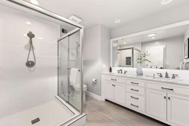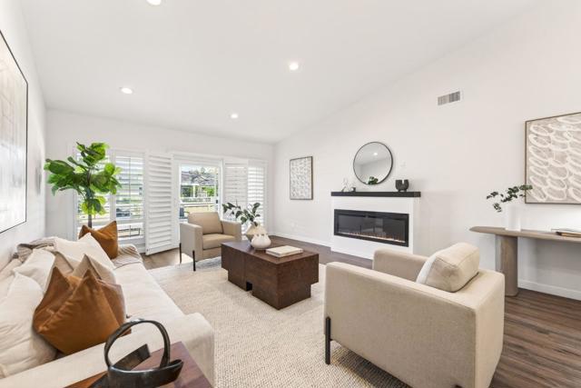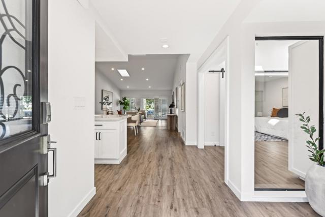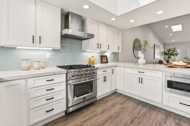 A beautifully updated single-story home in a Gated Community, blending modern elegance with everyday comfort. Featuring an open floor plan with vaulted ceilings, multiple skylights, recessed lighting, Milgard front door, and double-pane windows. Napoleon electric fireplace with built-in heater. Gourmet Kitchen features quartzite countertops, premium appliances including Bosch refrigerator, Forno 5-burner gas range, and Zephyr hood. A Waterdrop 6-step RO system and whole-house water softener. Two Serene patios, one overlooking the greenbelt and hilltop views plus a welcoming front patio with bar seating and lounge space. Located in the desirable Sunrise Almaden gated community with resort like amenities such as pool, spa, and tennis courts, this move-in-ready home offers refined upgrades and the best of California living.