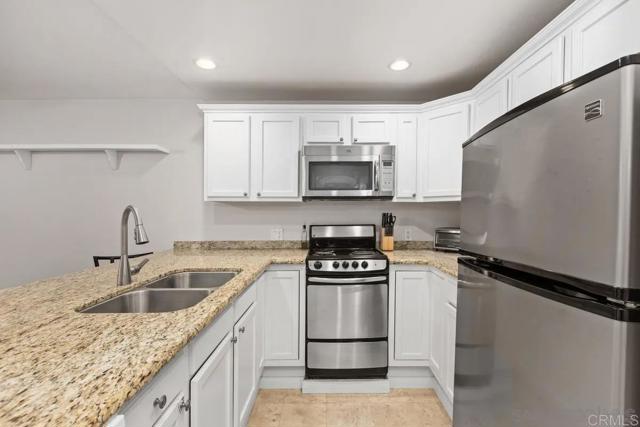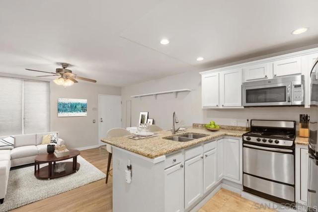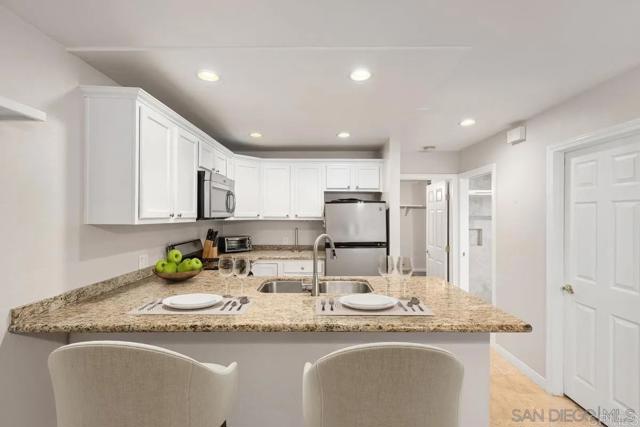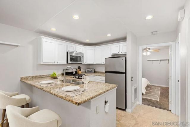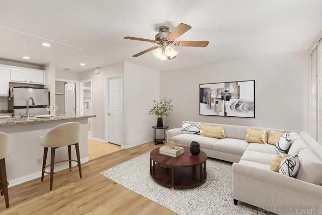 Charming 1 bed / 1 bath condo located in the west Fashion Valley community, highly desirable neighborhood. Minutes from USD, Fashion Valley, shopping, major freeways and trolly access. Unit features an open layout with a breakfast bar, an oversized bedroom with a large closet, stainless steel appliances, granite countertops, a walk-in pantry, upgraded flooring and bath. Comes with 1 dedicated covered parking spot and a separate storage unit. Additional guest parking is available. Complex features include a built-in pool just steps from the unit and a BBQ area for entertaining. Water and trash is included. No Pets.