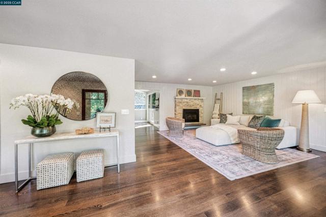 Ideally located within minutes to shopping, dining, entertainment, BART, and easy freeway access to both Hwy 24 and 680, this beautifully remodeled rustic rancher captures the best of Lafayette living — convenience, character, and comfort. Set gracefully above the road, the property makes a striking first impression. A long private driveway framed by a gorgeous Calistoga stacked stone wall, fresh landscaping, and a pebble parking area leads to this inviting residence. Every detail hints at the thoughtful updates and warmth that await inside. The home features stained white oak floors, a spacious living room with stone fireplace, and a stylish kitchen that opens to a comfortable family room offering the ease of indoor/outdoor living. The charming kitchen will delight any chef with its stainless steel appliances: gas cooktop, double ovens, refrigerator, microwave, instant hot water; marble & granite countertops. The primary suite features charming v-groove paneling, a large walk-in closet, and a spa-like bathroom with barn door entrance. An incredible bonus — the property includes an en suite studio/in-law unit with its own kitchen and private outdoor access. The spacious backyard offers new landscaping and walkways - envision a lush lawn, outdoor kit. and built-in BBQ.