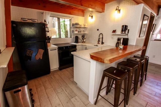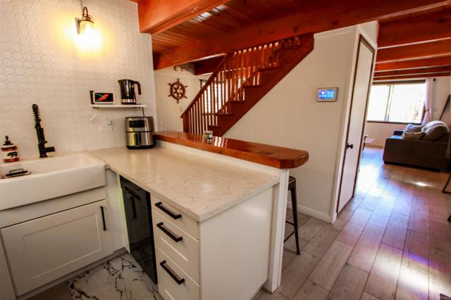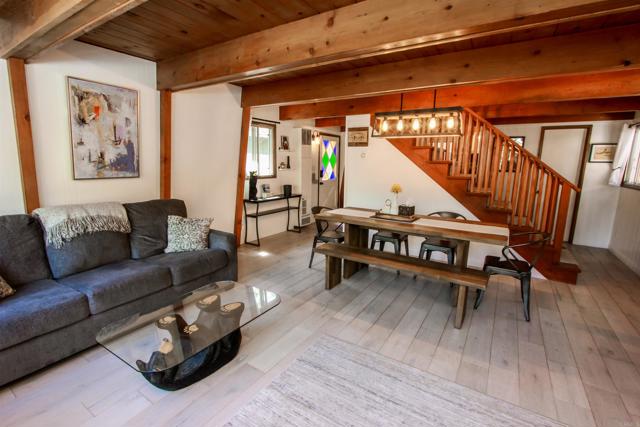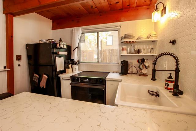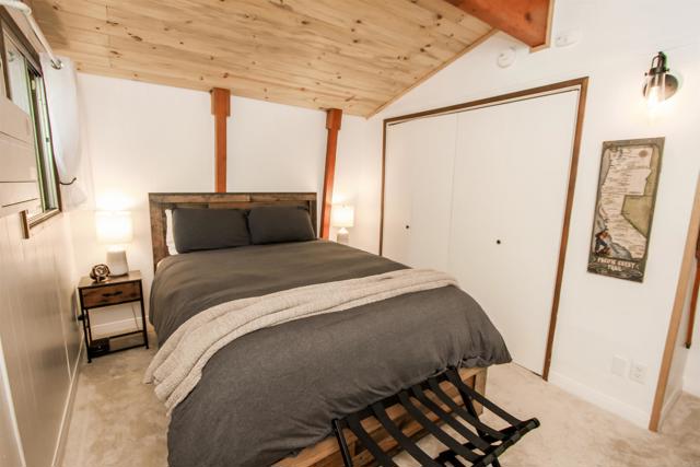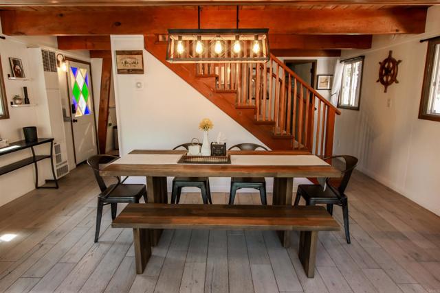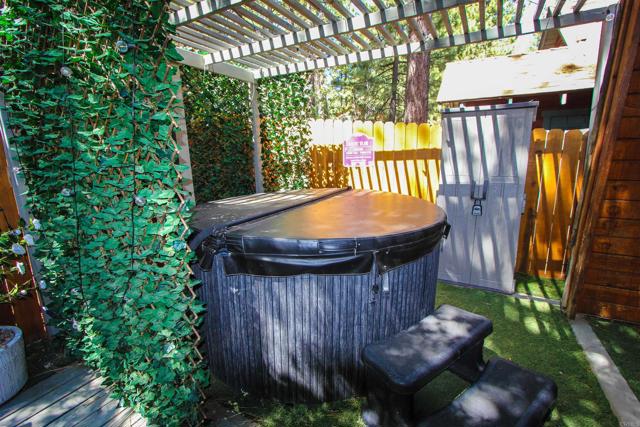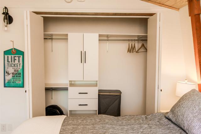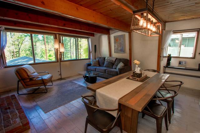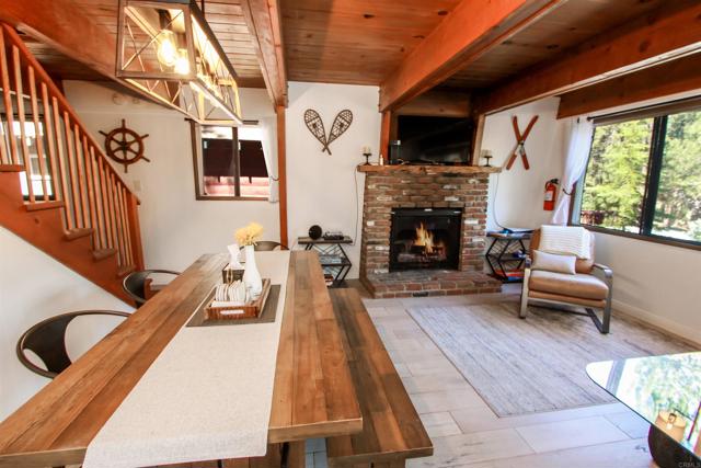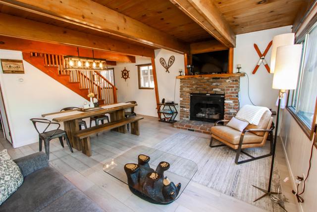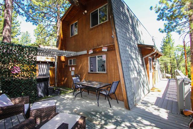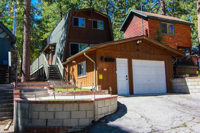 You’ll love this classic Gambrel home in the highly desirable 92314 zip code in Moonridge, near Fox Farm! Located on a quiet street with a large empty lot across the street. Conveniently near Bear Mountain, the golf course, Zoo, and the newly improved Moonridge corridor. It has stunning pine wood vaulted ceilings with appealing stained exposed beams throughout the home. Kitchen has a beautiful farmhouse sink and faucet, modern quartz countertops, and a rustic live-edge wooden breakfast bar. It is equipped with new appliances, including an added dishwasher. The tile backslash and open shelves provide a clean, modern look. The 1.5 car garage is currently used as a game room (7’ pool table with ping pong top, darts) and laundry room; potential to change to an ADU. The home features wood laminate flooring, new carpet upstairs, a brick gas fireplace, and six new electric heaters (bedrooms, garage, bathroom, in addition to the forced air heater downstairs.) A new tankless water heater in the garage has made available its closet by the front door… great for a cleaner’s or coat closet! The home has all new furniture included, providing for a turnkey short-term rental or family vacation home! Its large deck starts as you walk up to the front door, and wraps around to the backyard for your own mountain Oasis! Enjoy the large pine and oak trees surrounding the property, as you relax in the hot tub and stargaze. Complete with outdoor shed for tools, snow shovel, etc. Bistro lights surround deck walkway as well as pergola over hot tub – including outdoor table and patio chair set. Home is equipped and monitored with full ADT security system – Five cameras with a wall unit control center and kitchen display. 2 nest smart locks on front and garage doors… Lets unlock the door to your dream home!