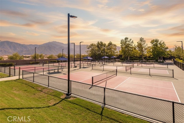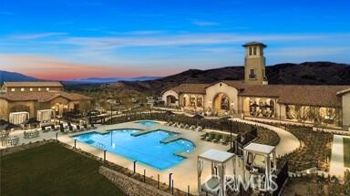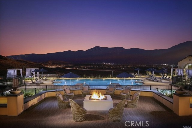TURNKEY single-story home in the sought-after 55+ guard-gated community of Terramor offering 2,061 sq. ft., 2 bedrooms, 2 bathrooms, and a VERSATILE DEN with custom built-ins. A 42" entry door opens to an elegant interior featuring wainscoting, REAL WOOD FLOORING, and an OPEN-CONCEPT design with dramatic wall-to-wall sliding glass doors leading to the CALIFORNIA ROOM with breathtaking, UNOBSTRUCTED MOUNTAIN VIEWS. The gourmet kitchen boasts QUARTZ COUNTERTOPS, a large island with farmhouse sink, STAINLESS STEEL APPLIANCES including a 5-burner cooktop with hood, WALK-IN PANTRY, designer lighting, spacious dining area, and built-in buffet cabinetry. The living room features a built-in ELECTRIC FIREPLACE, custom shelving, surround sound provisions, and convenient floor outlets. The primary suite offers TRAY CEILINGS, WALK-IN CLOSET, WALK-IN SHOWER with skylight, and upgraded finishes throughout. Additional highlights include a skylit laundry room with cabinetry and utility sink, window shutters, central vacuum system, electric sunshade at the California Room, artificial turf, and installed gas line for future outdoor features. Enjoy RESORT-STYLE amenities including clubhouses, pools, fitness center, pickleball, tennis, bocce ball, dog parks, and an active social calendar. Luxury living with stunning views and thoughtful upgrades throughout.