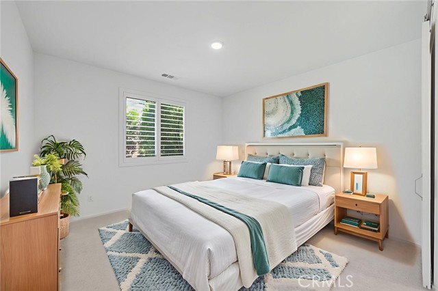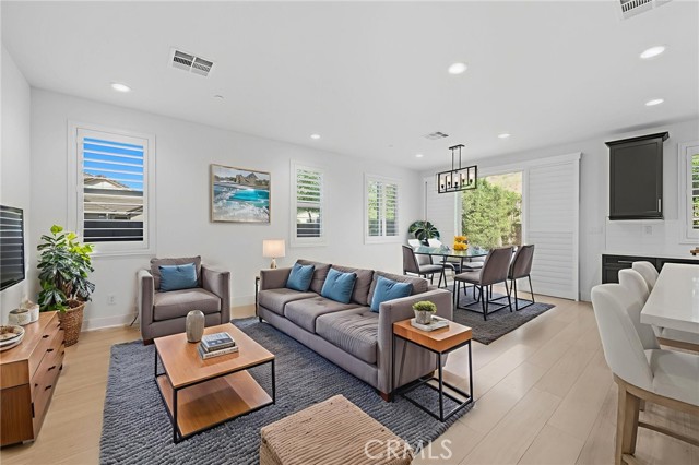 Nestled in the Skyview tract of Terramor, this single-story residence combines modern upgrades with the convenience of low-maintenance living. Located at the end of the street, the home has just one neighboring unit on one side, with the other side set along a peaceful neighborhood street that enhances its airy setting. With no direct neighbors behind, the property enjoys a more open backdrop that adds to its sense of privacy. The bright kitchen is the heart of the home, featuring a large center island, quartz countertops, a pantry, a gas stove, and recessed lighting. It opens seamlessly into the living space, creating an inviting atmosphere that’s ideal for everyday comfort or gathering with family and friends. The primary suite includes a walk-in closet and en-suite bath, while two additional bedrooms provide flexibility for guests, an office, or hobbies. Fresh interior paint, new bedroom carpet, upgraded shutter window coverings, and luxury laminate wood flooring make it move-in ready. Additional upgrades include paid solar panels, savings on monthly energy bills while reducing your environmental footprint, and a tankless water heater that provides efficiency, reliability, and hot water on demand. Altogether, these thoughtful features create a home that feels modern, effortless, and ready to enjoy from day one. The backyard is thoughtfully designed for both relaxation and entertaining. A paver patio offers the perfect spot for outdoor gatherings, while the artificial turf keeps maintenance simple. Indian Laurels line the perimeter, offering a canopy of greenery, natural shade, and enhanced privacy that makes the yard feel like its own retreat. Whether gathering with friends, savoring a quiet cup of coffee, or unwinding beneath the evening sky, this outdoor space extends your living area year-round. Life at Terramor offers so much more than just a home. Residents enjoy resort-style amenities including a beautifully maintained pool and spa, clubhouse, playgrounds, and hiking trails. Dog-friendly parks and planned community events bring neighbors together, making it a place where both people and pets feel at home, all within a secure, gated setting.