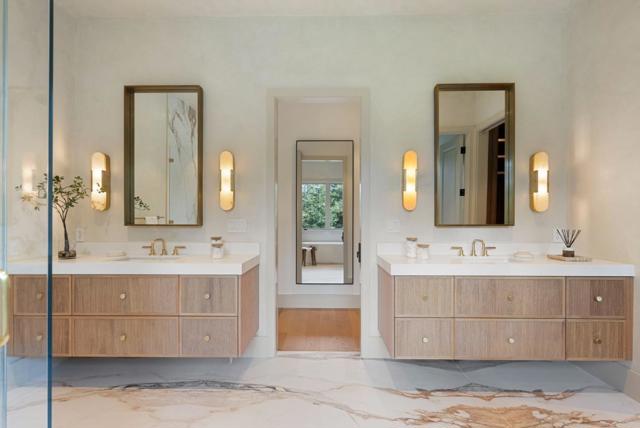 Striking modern estate offering the perfect blend of luxury, scale, and design. This full scale renovation showcases soaring ceilings, dramatic floor-to-ceiling windows, and seamless indoor-outdoor living. The spacious floor plan features grand formal and casual living areas, a sleek chefs kitchen, and walls of glass opening to expansive terraces with serene tree-lined views. Luxury amenities include a private home theatre, gym, tasting room and wine cellar, elevator, and a resort-style backyard with pool house and built-in BBQ. The sparkling pool with water features, multiple lounge areas, and expansive patio create the ultimate setting for entertaining and relaxation.