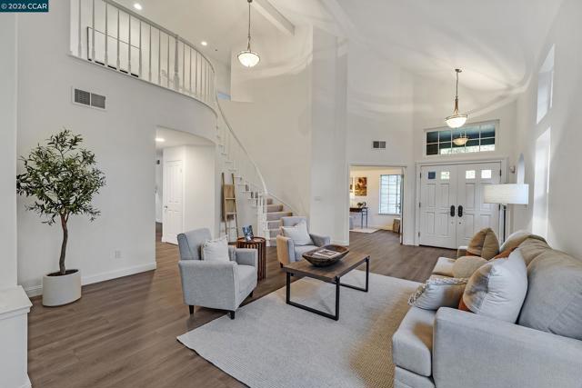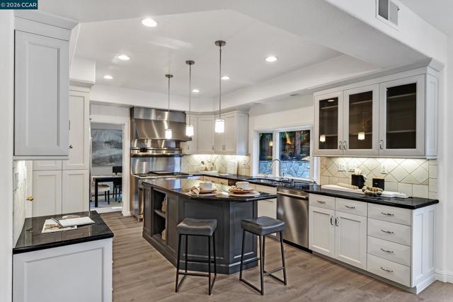 Located in highly coveted Westside Danville within the prestigious gated West Briar Knoll community, this beautifully remodeled residence offers five bedrooms and three bathrooms, spanning over 3,150 square feet on an expansive 8,700 square foot lot. Thoughtfully designed with a bedroom and full bathroom on the main level, the home features vaulted ceilings, recessed lighting, hardwood floors, fresh interior paint and an abundance of natural light throughout. Formal living and dining rooms provide elegant entertaining spaces, while the stunning chef’s kitchen is the true centerpiece with a six-burner gas range, expansive island, walk-in pantry, eat-in nook, built-in refrigerator, and generous cabinet storage, all opening seamlessly to the family room with fireplace. The kitchen and family room flow effortlessly to a private backyard oasis featuring patio pavers, turf lawn, and a putting green, ideal for both relaxation and entertaining. The expansive primary suite is a luxurious retreat with a large walk-in closet and spa inspired en-suite bath offering dual vanities, soaking tub, separate shower and a dramatic double-sided fireplace. Additional highlights include a bonus room, three-car garage, HOA maintained front landscaping, and unbeatable proximity to downtown.