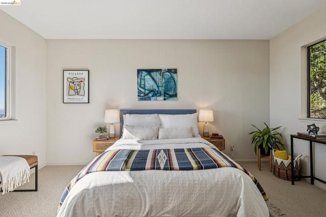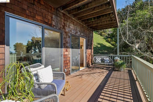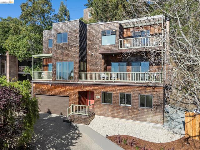 This Berkeley Hills gem on iconic Grizzly Peak Boulevard, offering sweeping, unobstructed views of the San Francisco skyline, Golden Gate and Bay Bridges, and Bay, from nearly every room, is as smart as it is beautiful. A modern, classic brown shingle exterior blends timeless character with thoughtful upgrades and a strong connection to the surrounding landscape. The light-filled interior features hardwood floors, expansive windows, and a striking wooden staircase topped by a lantern skylight. The primary suite includes a private view balcony, while the bedroom-level laundry adds modern ease. Multiple outdoor spaces including Trex decking, a kitchen-side patio, and a private side yard from a second ensuite bedroom create easy indoor outdoor living. Extensively improved for resilience and efficiency, the home includes significant seismic upgrades with a moment frame, 27 solar panels, Tesla Powerwall, mini-split heat pumps, EV charger, and Zone Zero compliance. With a Home Energy Score of 10, this is a rare blend of Berkeley charm and high-tech peace of mind. A two car attached garage plus off street parking for two adds rare convenience. Ideally located near Tilden Park, the UC Botanical Garden, and just minutes to UC Berkeley and North Berkeley amenities.