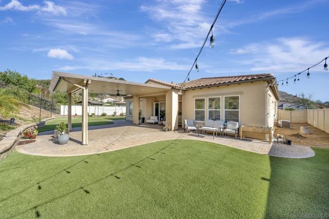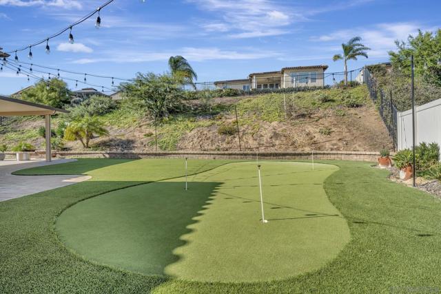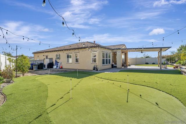 Experience elevated living in one of Escondido’s most desirable communities, Canyon Grove. This beautifully upgraded single-story home is privately positioned at the end of a quiet cul-de-sac on an expansive lot with a long driveway that offers a true sense of space and privacy. Inside, the open and functional floor plan is filled with natural light. Three generously sized bedrooms and an office, thoughtfully designed living spaces create both comfort and flexibility. Premium upgrades include paid solar panels, an advanced electronic air cleaner, and two EV chargers, including one for Tesla, delivering efficiency and modern convenience. The backyard is designed for easy entertaining and everyday enjoyment, featuring a custom putting green and low maintenance landscaping that enhances the private setting. With low HOA fees and no Mello-Roos, this property represents incredible value in a prime location close to shopping, dining, parks, and top amenities. A rare opportunity to own a home that combines privacy, function, and style in one of the area’s most sought-after neighborhoods.