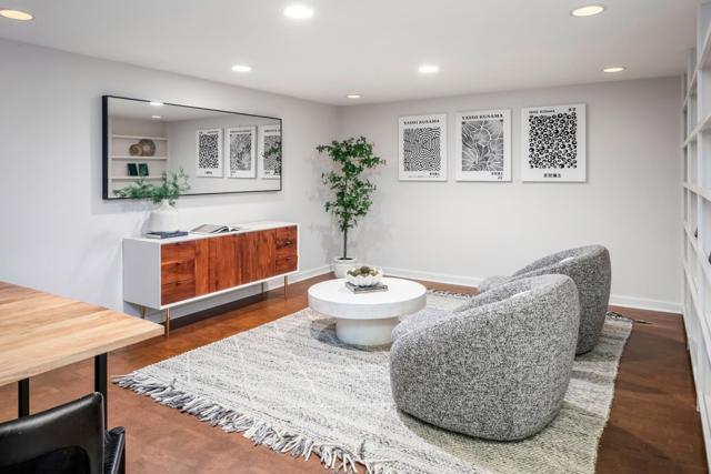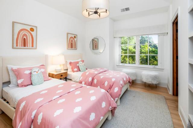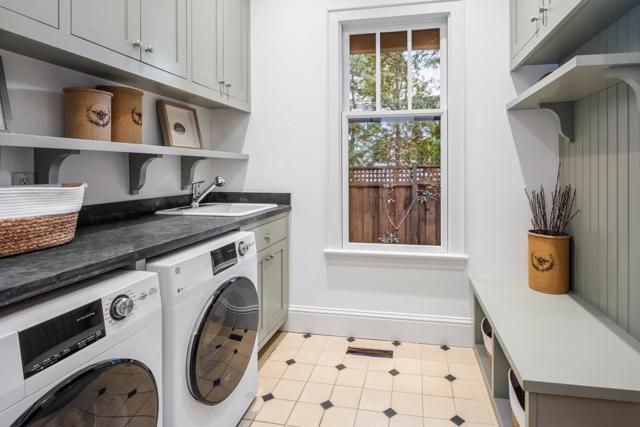 Peace and quiet abound in this very attractive and spacious west Menlo Park home on three levels featuring a large living room with fireplace, dining area and doors to a patio with a barbecue grill and large private yard. The expansive, well-appointed kitchen/family room has a 10ft kitchen island, honed Italian stone countertops, top appliances, a dining area and adjoining family room with entertainment center. On this level is a gorgeous ground-floor primary bedroom, walk-in closet and sumptuous bathroom with tub and shower. Also on the first floor is a custom finished office and full bath. The fabulous lower level media/rec room is like having your own sports bar with a built in bar, wine storage, and large seating and entertainment area. There is a bedroom and full bath on this level plus additional laundry facilities. Also on this level is a large bonus room for play or study. Upstairs are three fine bedrooms with custom closets. One bedroom has an ensuite bathroom and there is an attractive, hall bathroom. A professionally landscaped southwest facing yard with patio, hot tub and expansive lawn affords privacy and quiet enjoyment. Close to award-winning Menlo Park schools, Stanford, downtown Menlo Park shops, Caltrain and an expanding restaurant scene.