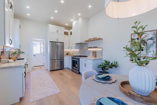 Welcome to this charming, turnkey, fully remodeled Monterey home offering comfortable and convenient living just blocks from the beach, walking trails, and downtown amenities. This lovely 2-bedroom, 2-bath residence is filled with character and thoughtful upgrades throughout. The brand-new kitchen is beautifully appointed with quartzite countertops, gas range, dishwasher, refrigerator, & pantry, making it a wonderful space for everyday living and entertaining. The kitchen opens to the family room/dinning room, creating a cozy and functional gathering space with an unexpectedly spacious feel thanks to the soaring ceilings. Beautiful real hardwood flooring runs throughout the home, adding warmth and timeless style. Situated on a large lot, the property offers plenty of off-street parking and includes plans and permits ready for a future single-car garage. The large backyard is ready for family gatherings, celebrations, or simply enjoying the Monterey lifestyle. Located just minutes from famous Fishermans Wharf, you can pick up fresh seafood to cook at home or grab something to go. With its stunning renovation, attention to detail, and prime Monterey location, this delightful home is ready to be enjoyed. A walk-in basement provides additional storage.