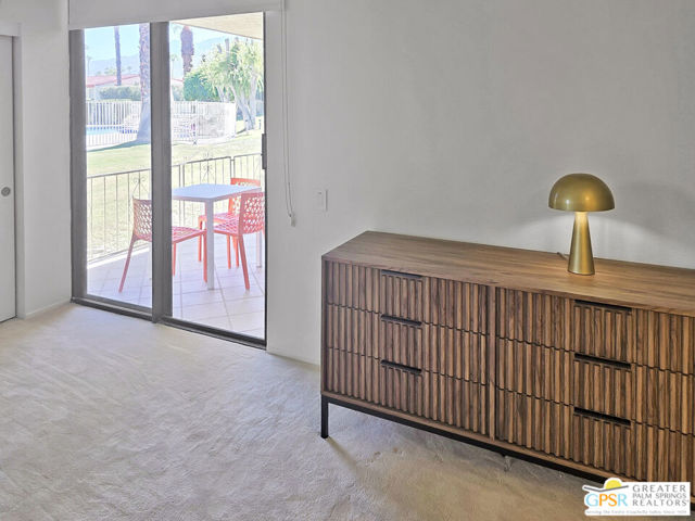 Seasonal rental--months available Jan thru Mar 2026 @ $4500/mo, May-June 2026 at $2800, Sep 2026 at $2800, Oct/Nov 2026 @ $3500. This turnkey furnished 2bed/2bath 1325 sq ft condo is your PERFECT Palm Springs getaway in a beautifully maintained community. Open floor plan flows seamlessly from great room to pool side view patio (just steps from community pool/spa) that also offers wonderful mountain views. Both the great room and the primary bedroom have sliding lass doors leading to this patio. Condo is all on one level with 1 car garage plus dedicated open parking spot steps from front door and front patio. Visitor parking spots steps from this condo also available. There is also a laundry room equipped with full size Washer/Dryer units. All this with an unbeatable location in South Palm Springs, minutes from downtown. Easy access to shopping, dining, hiking trails, golf and valley entertainment. NO PETS ALLOWED. Tenant pays combined elec/gas usage over $250/mo. Rental comes with cable TV,internet.