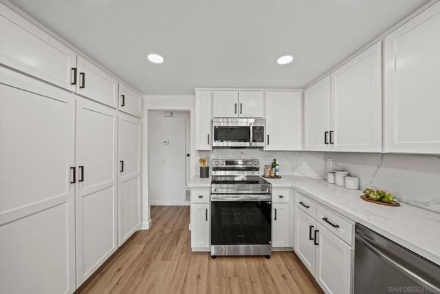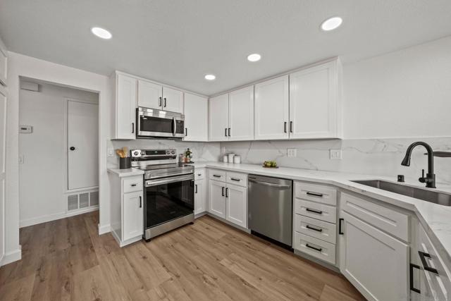 Completely remodeled Lake San Marcos townhome located in the The Colony. Updated throughout with new LVP flooring, renovated kitchen and bathrooms, designer fixtures, and much more. The spacious and well designed floor plan includes vaulted ceilings and a fireplace. Enjoy elevated views of the mountains in the distance, part of the golf course, and surrounding area from your private patio area. This property offers a peaceful setting with easy access to resort-style amenities. The HOA includes membership to the Lake and Lodge, with access to tennis and pickleball courts, two heated pools, clubhouse, billiards, and access to the lake for fishing, kayaking, paddle boarding, boating, and more. Within this vibrant community, you’ll also enjoy The Lakehouse Hotel and Resort, dining options such as Brickman’s Restaurant Bar, lakeside meals at Amalfi, two golf courses, and the peace of mind that comes with 24 hour neighborhood security.